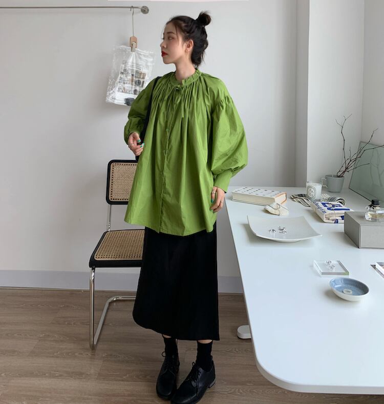 シャツ女性デザインセンスニッチ初秋2020新しいフレンチパレススタイルのランタンスリーブフォールドネックネクタイシャツトレンド クレセントシティ37783238792