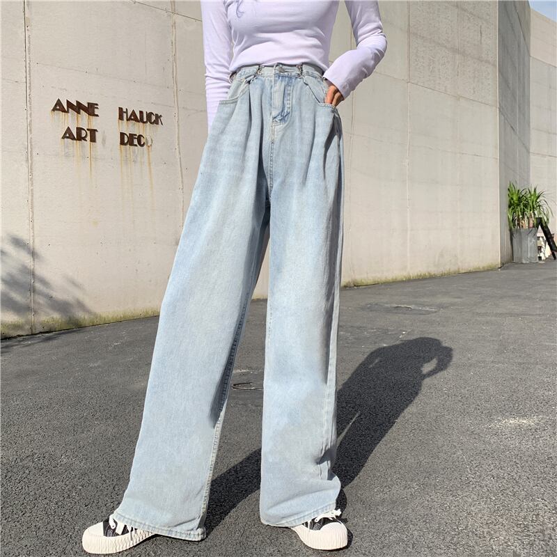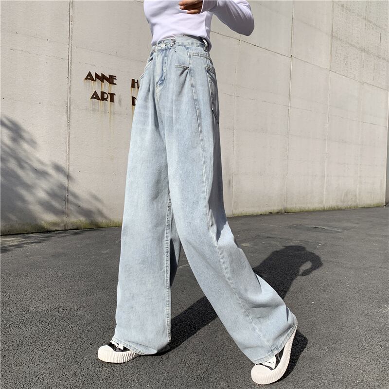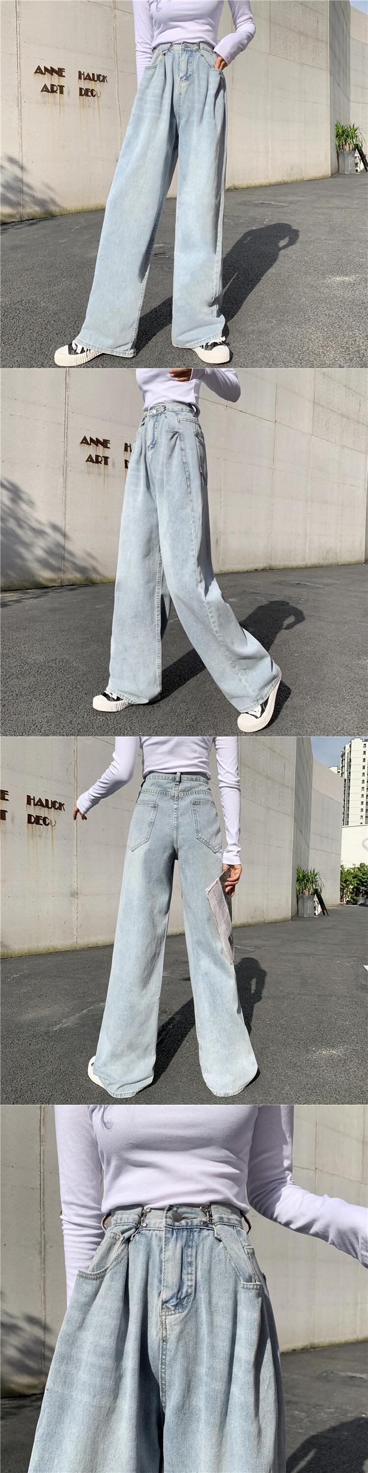 ジーンズレディースストレートルーズワイドレッグパンツ2020春新作ハイウエストスリムドレープモップパンツ クレセントシティ35353597440