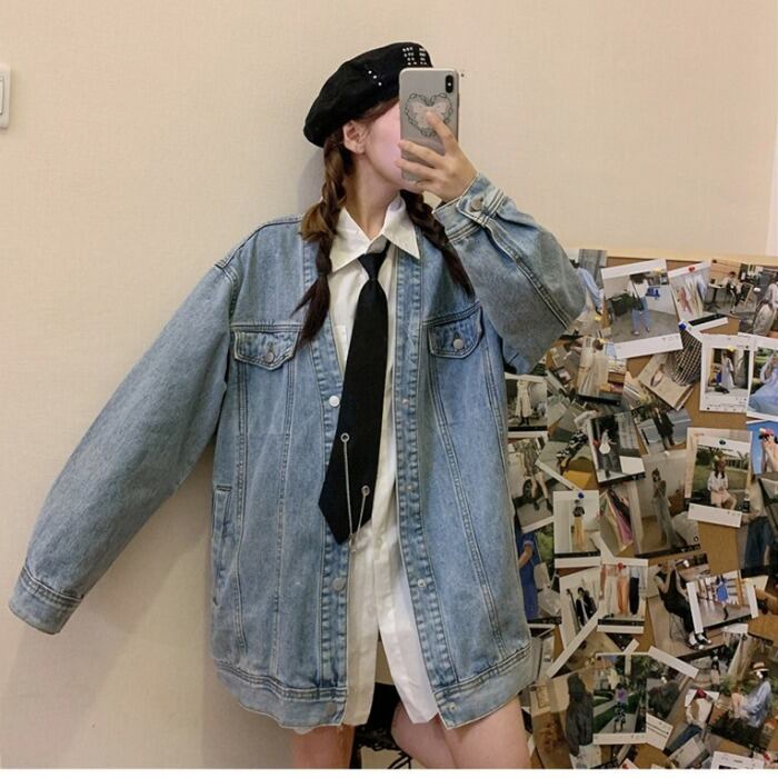 レトロな香港スタイルのデニムジャケット女性2020年秋新しいルーズBFオールマッチカジュアル長袖ジャケットトップトレンド クレセントシティ60487916967