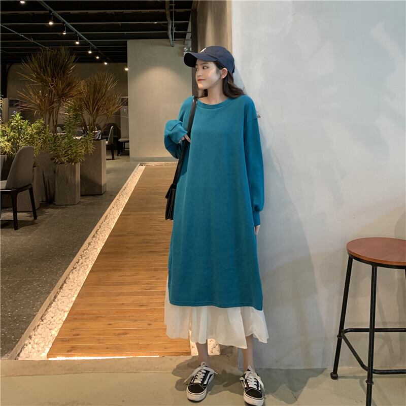 ニットドレスレディース2020年秋冬新作スタイルルーズで怠惰なスタイルのアウターウェア学生の膝上ロングスカートイントレンド クレセントシティ68610345262