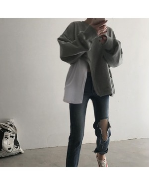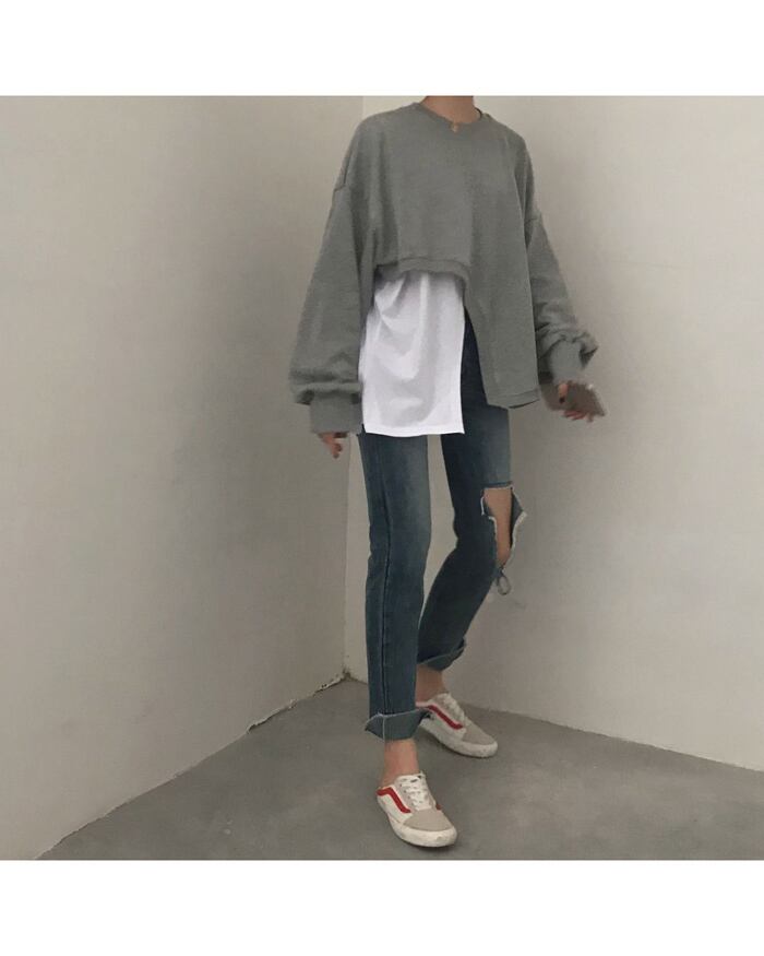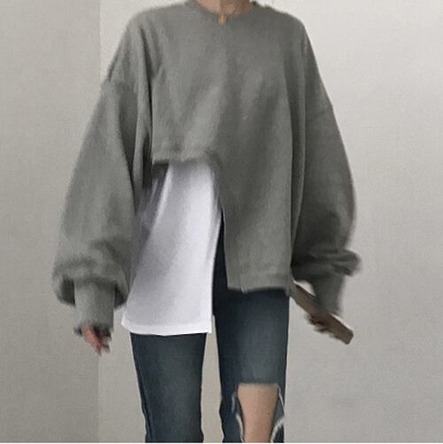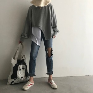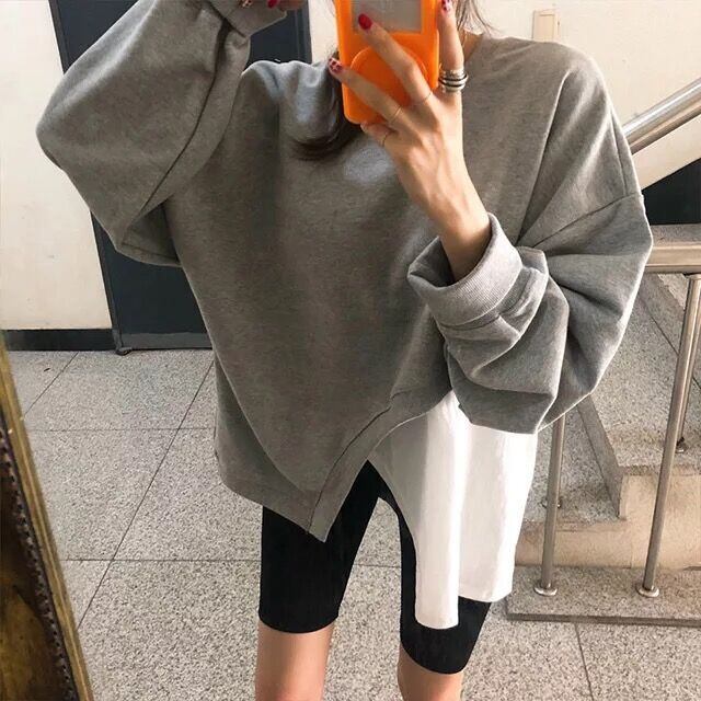 2020年初秋の新非対称デザインセンス怠惰な風裾スプリットヘムトップ長袖プルオーバーセーター女子学生 クレセントシティ98142178646