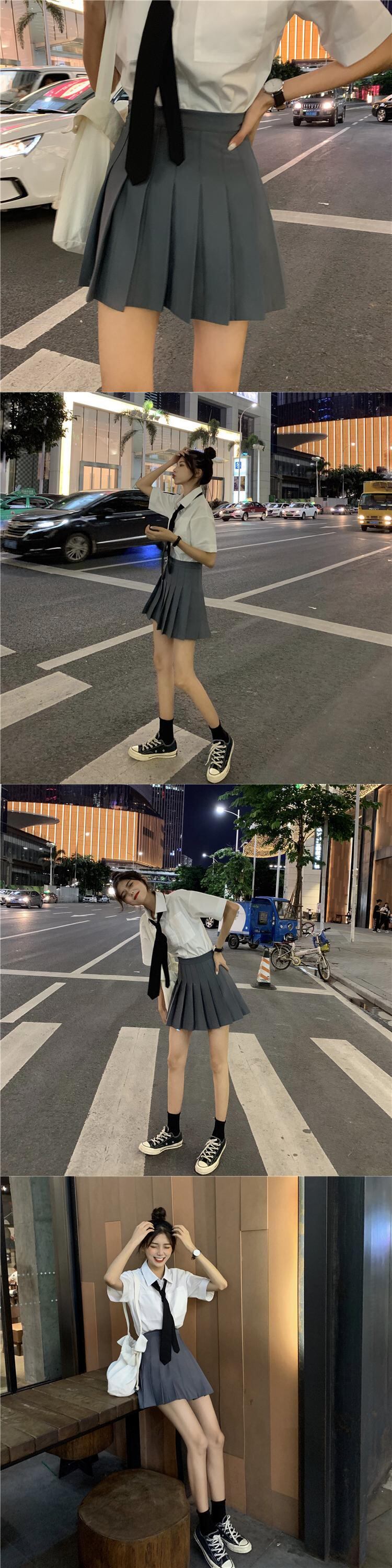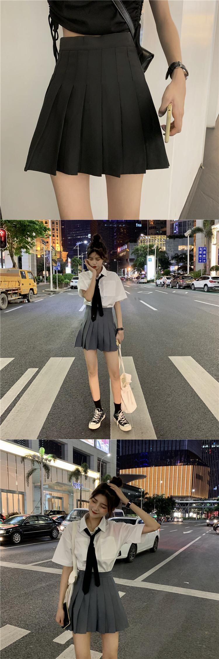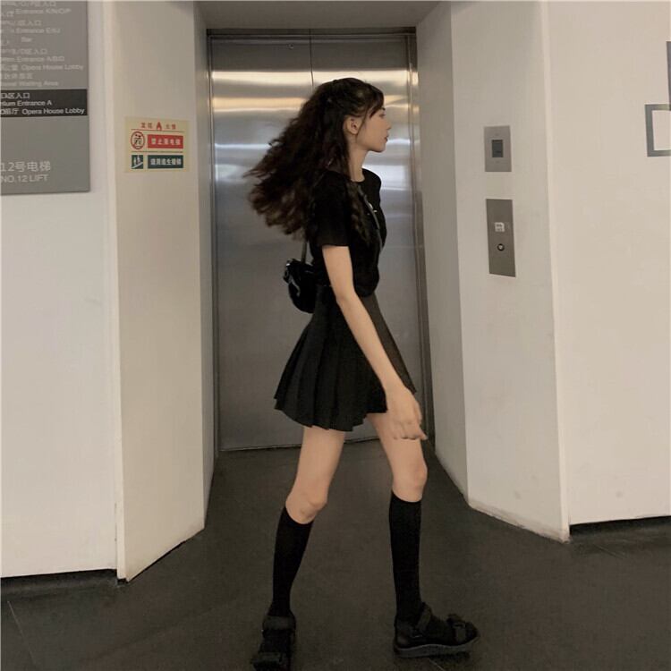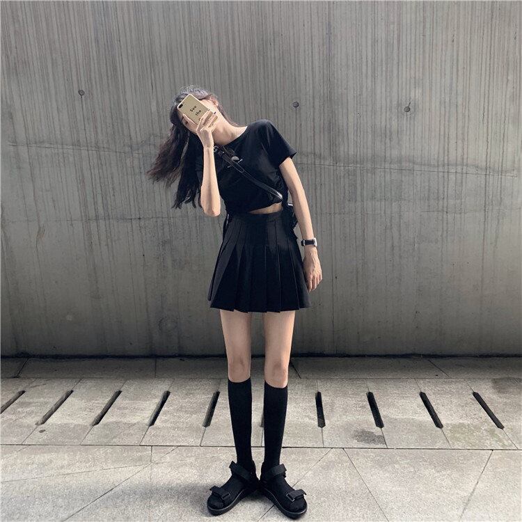 スタイルのスカートハイウエスト薄いAラインプリーツスカート女性2020秋の新しい黒のスカートの学生のスカート クレセントシティ76552276059