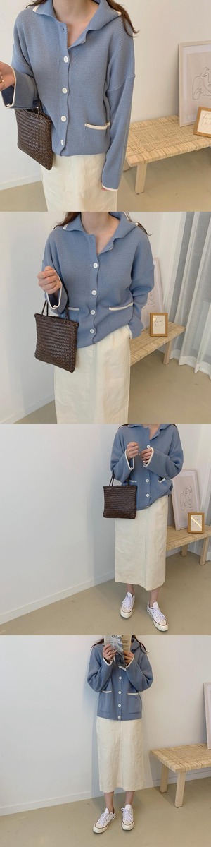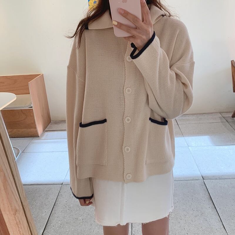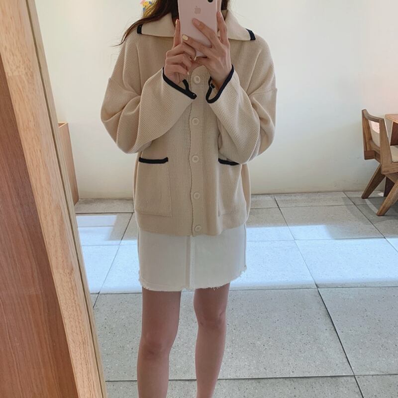 2020年初秋セーターレディース新作ネイビーカラーシックなデザインセンスルーズコントラストカラーニットカーディガンジャケットトレンド クレセントシティ56376609314