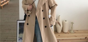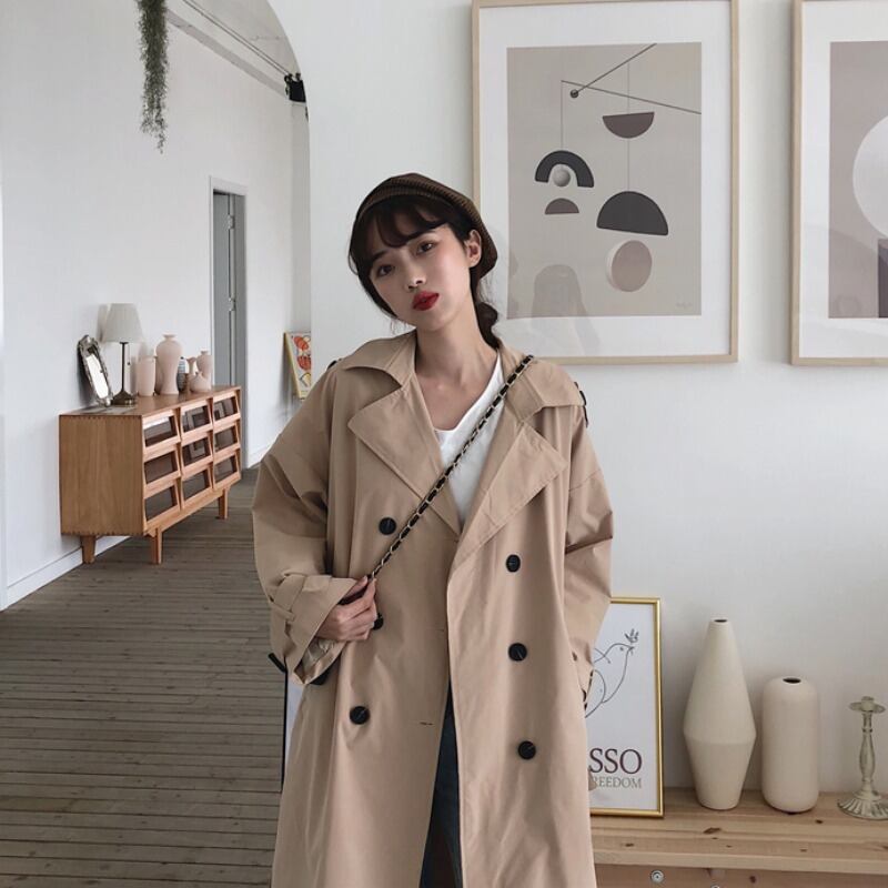 insウインドブレーカーの女性のミドル丈と小さな英国風の緩い学生のウインドブレーカージャケット膝の上の長い気質は薄かったです クレセントシティ75572117654