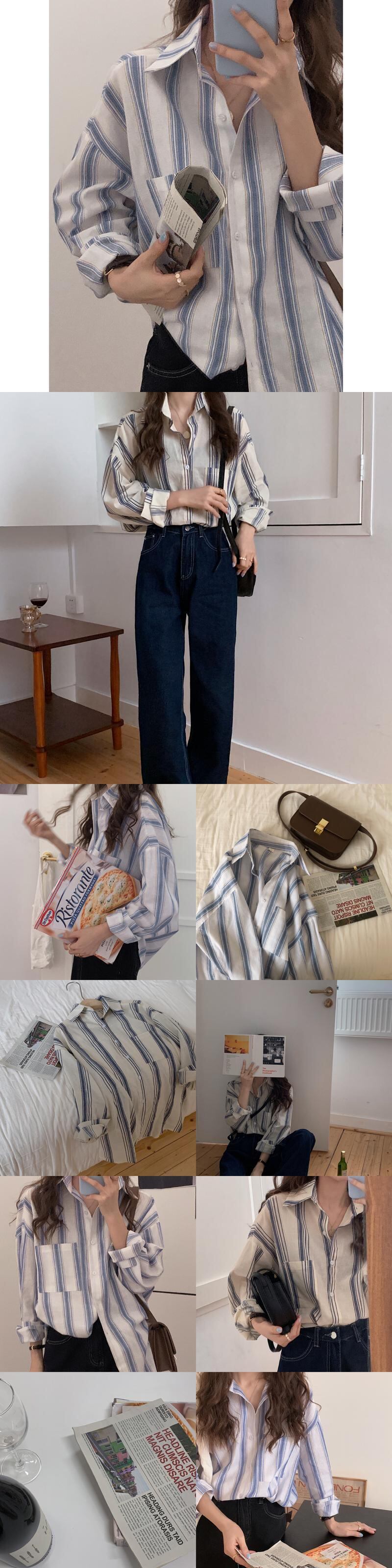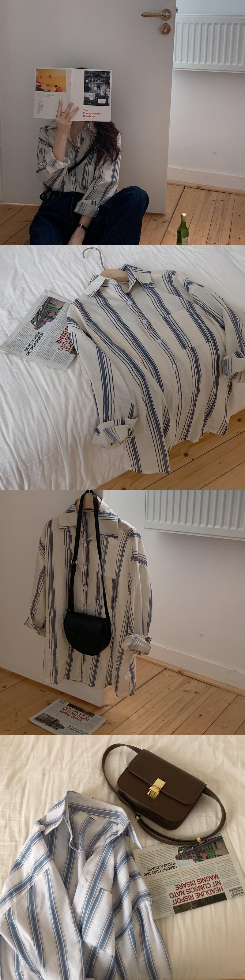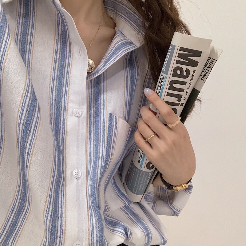 ストライプシャツ女性デザインセンスニッチ2020年初秋新バージョンルーズスリムポケット長袖シャツトレンド クレセントシティ76684939027