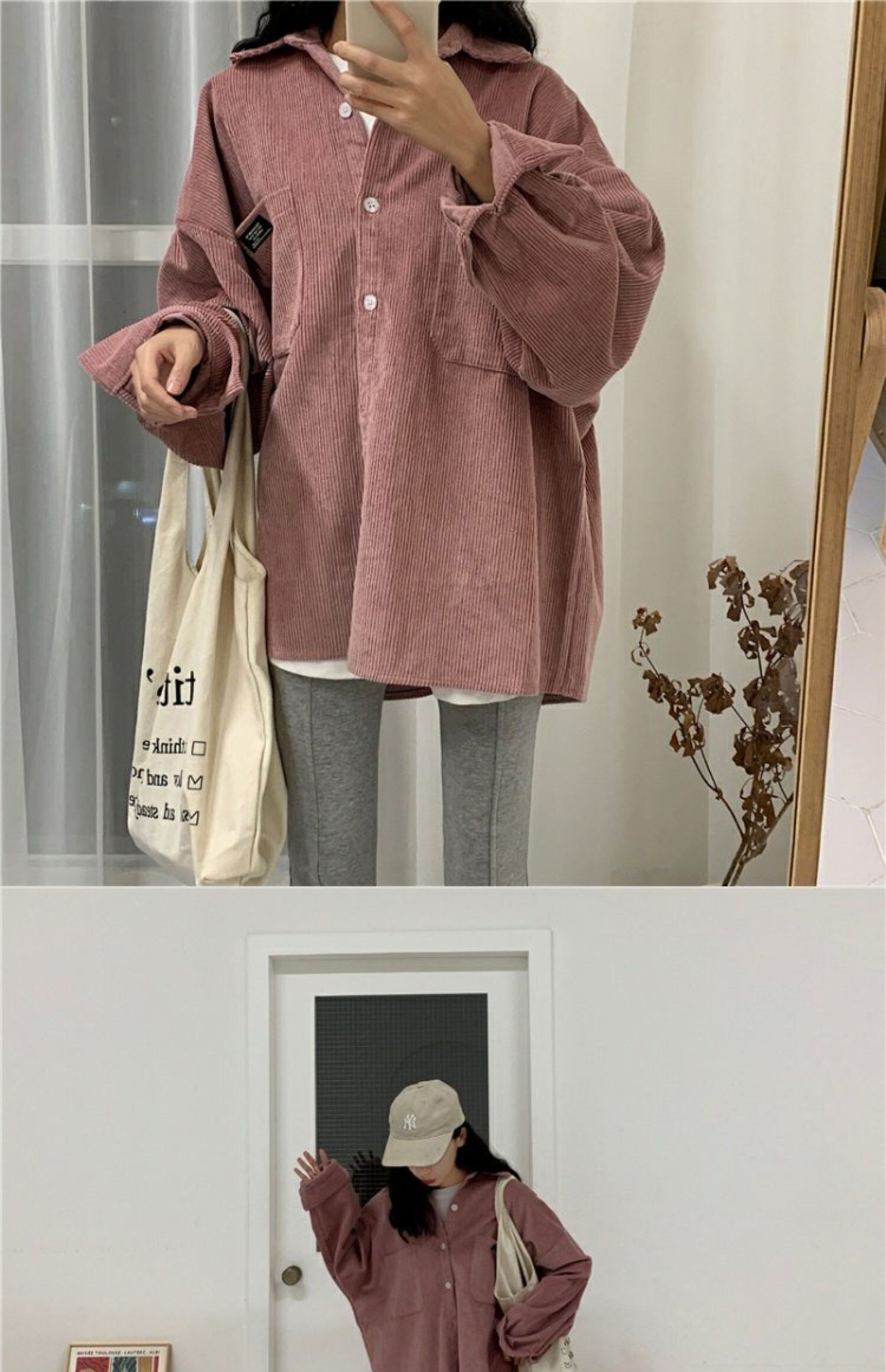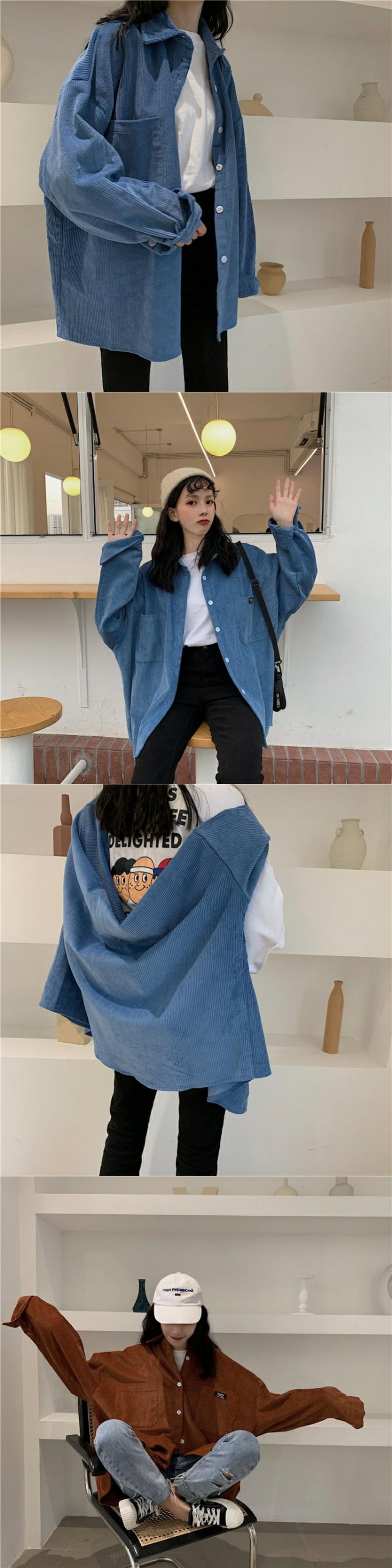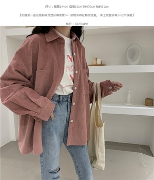 BF風緩いコーデュロイシャツ女性レトロ香港風秋と冬モデルオールマッチウエスタンスタイル学生カレッジスタイルシャツジャケット クレセントシティ62631944300