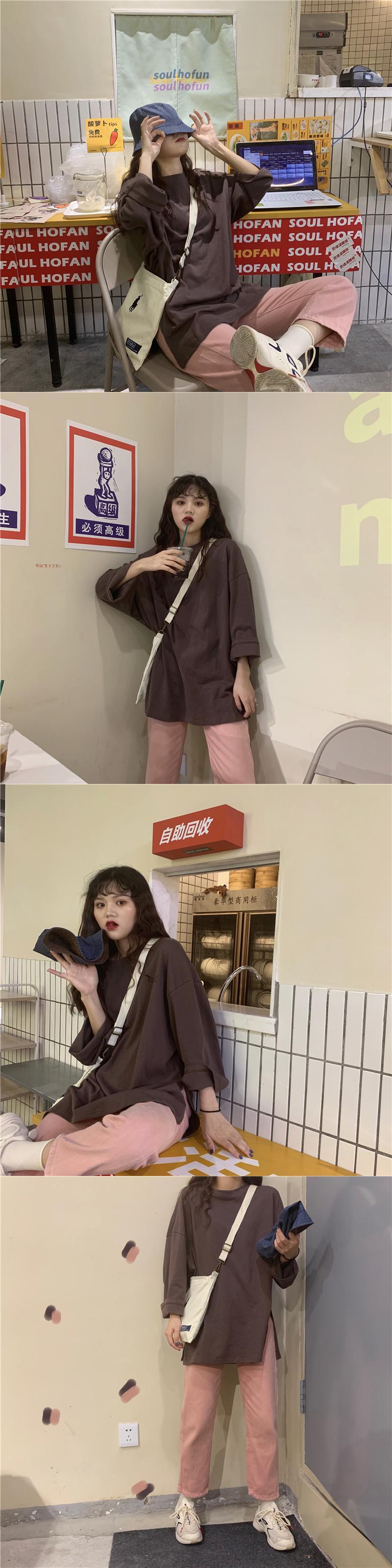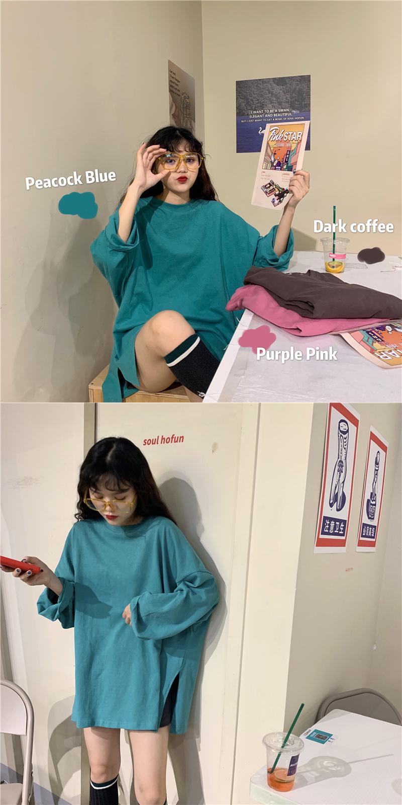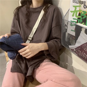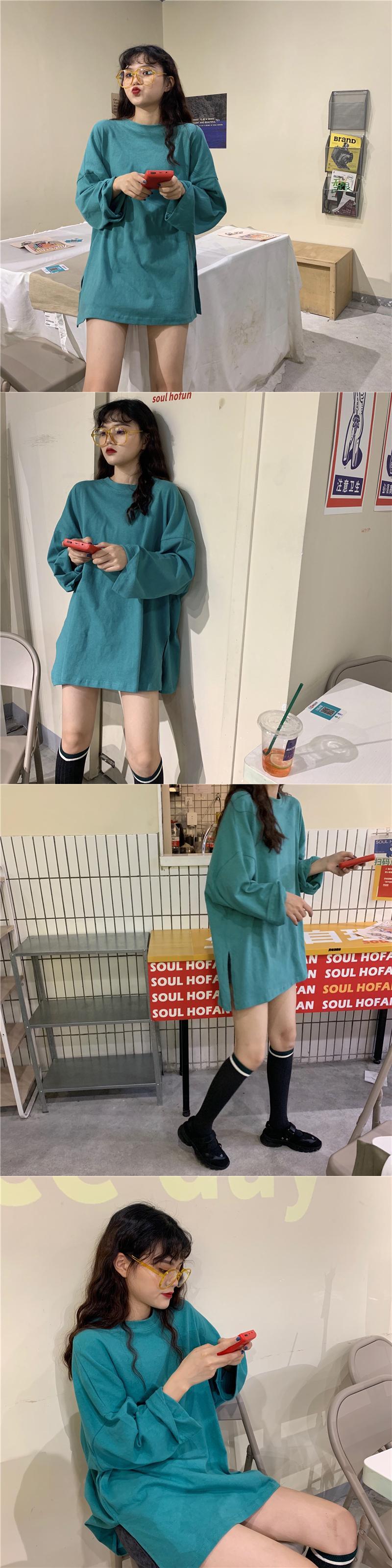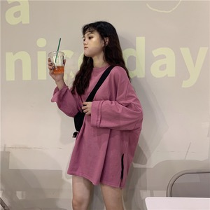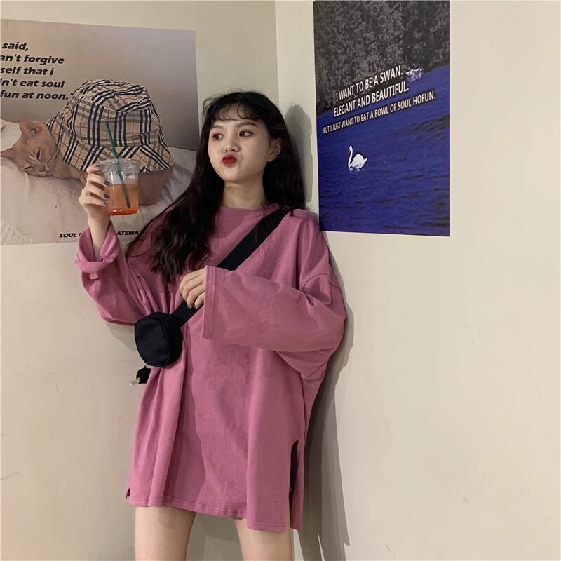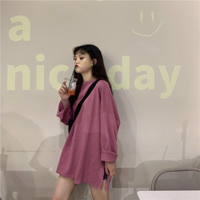 レイジースタイルソリッドカラー長袖Tシャツ女性緩いバージョンのins潮2020年春新学生下半身欠けトップ クレセントシティ23650827456