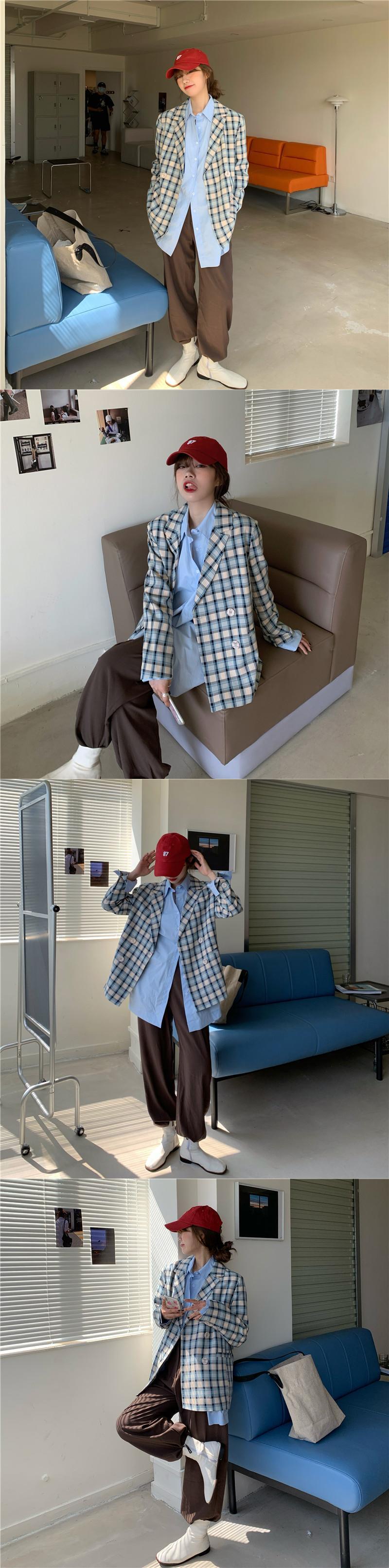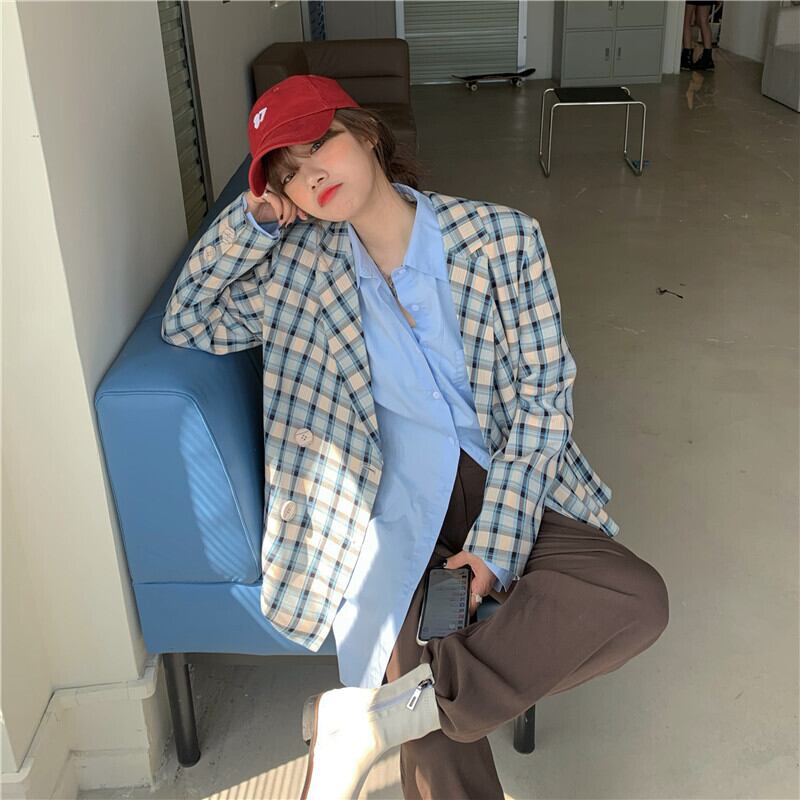 ブルーチェック柄スーツジャケットレディース2020年初秋新バージョンの小さくて薄いルーズな長袖スーツ クレセントシティ92239238054