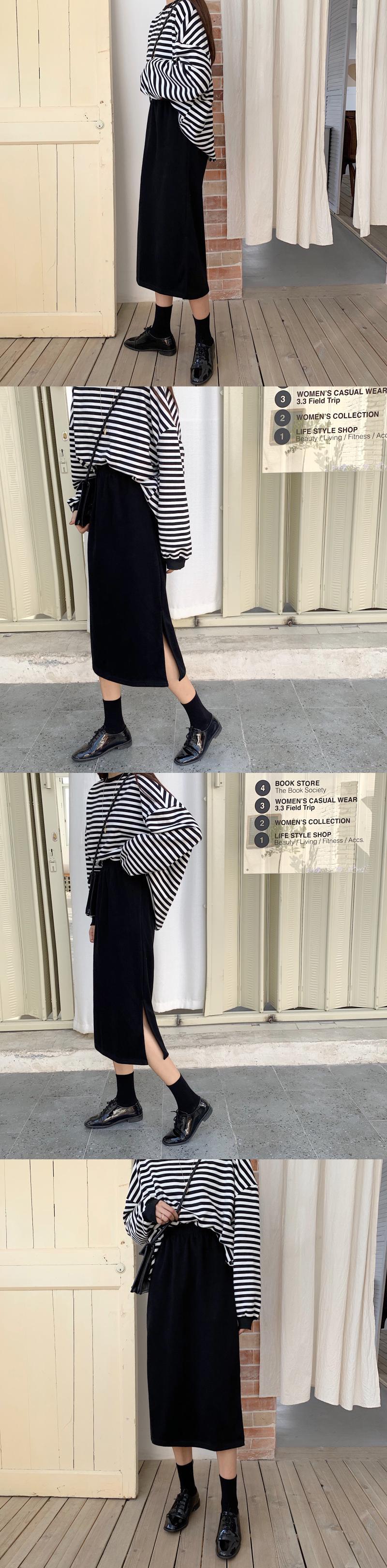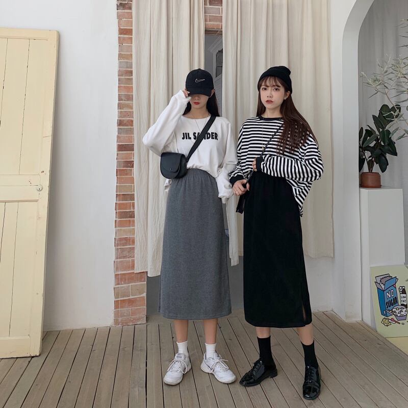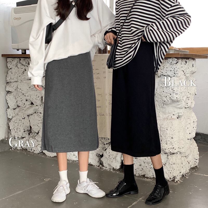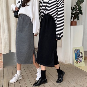 ピュアカラーミッドレングススカートレディース初秋2020新伸縮性ウエストルーズスリットハイウエストAラインスカートイン クレセントシティ59936486907