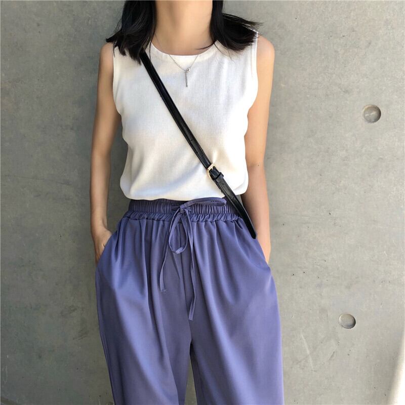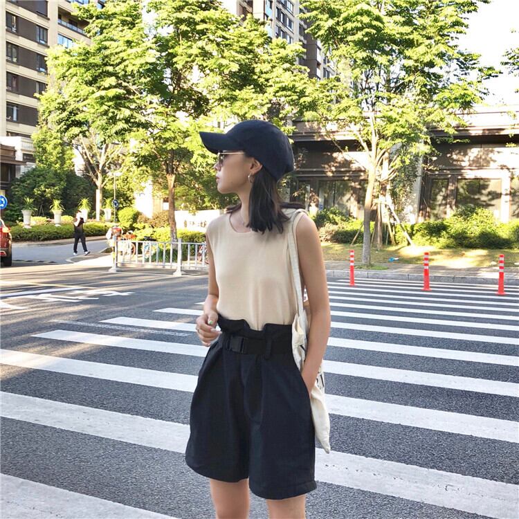 ニットのノースリーブベスト女性は、2020の新しいバージョンのトップス付きのスリムで薄い無地のボトムスシャツを着用しています クレセントシティ81733428426