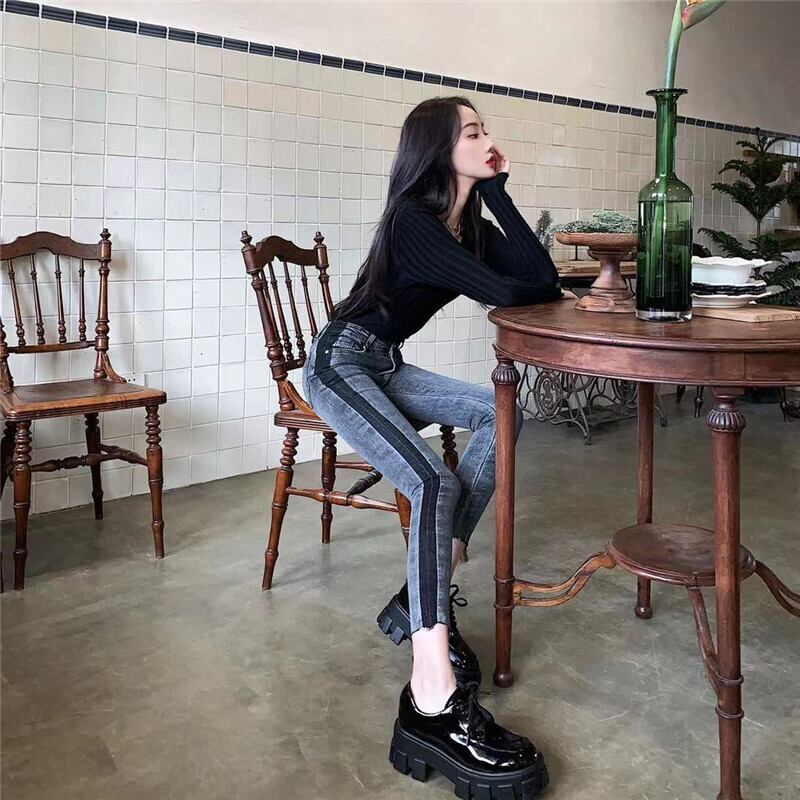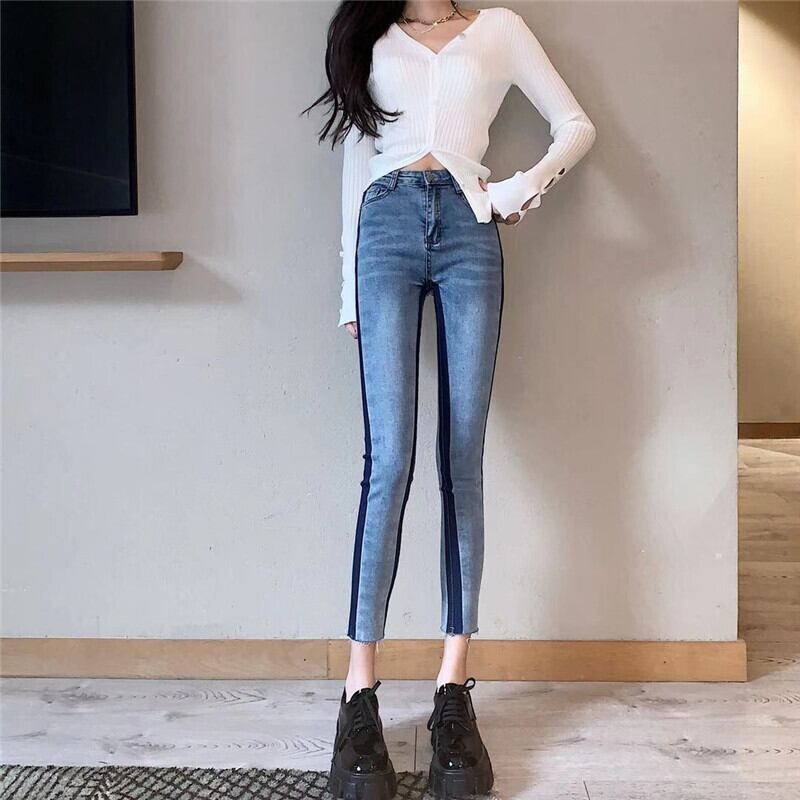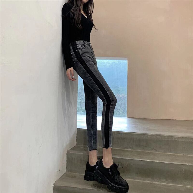 ウエストジーンズレディース2020新バージョンスリムスリミングオールマッチスモールフィートペンシルパンツコントラストカラーステッチ9点パンツ クレセントシティ63008308471