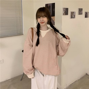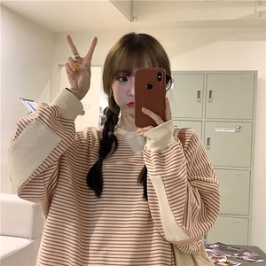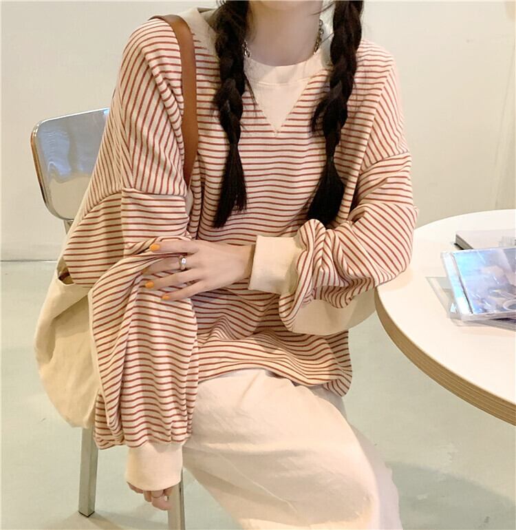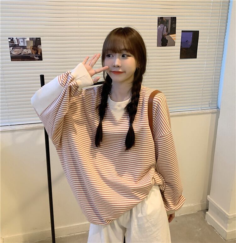 ラウンドネックストライプセーターレディースパッチデザインニッチな2020年初秋のセンスルーズカジュアル新作長袖シャツ クレセントシティ17944376383