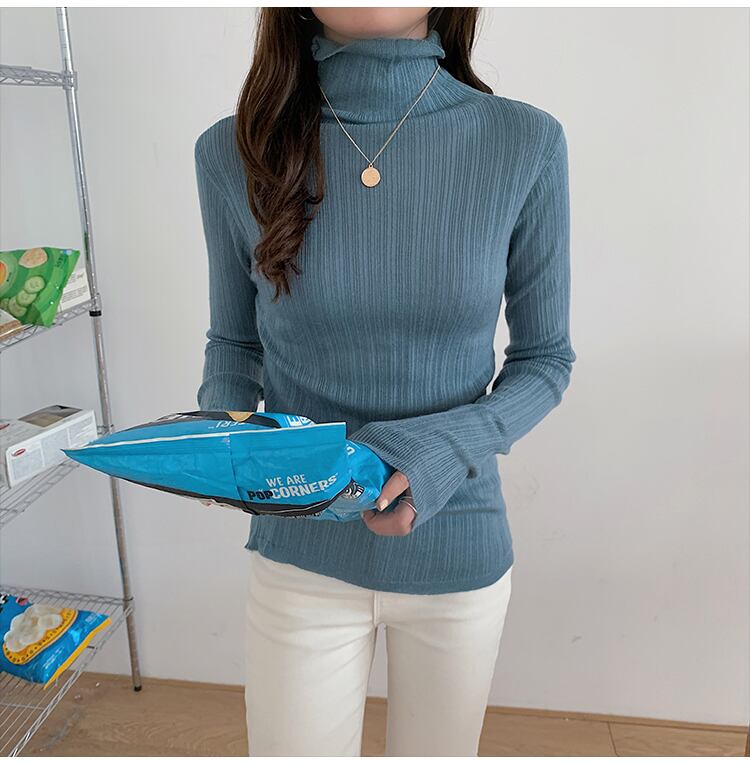 -ネックボトムスシャツレディース秋冬スリムスリムワイルドウールセーター長袖トップス クレセントシティ70970453500