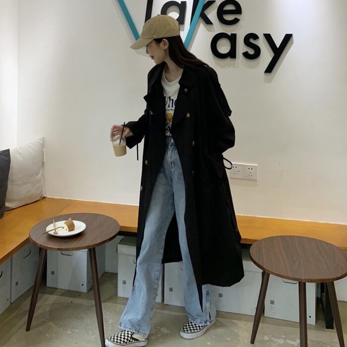 ウインドブレーカーレディースミッドレングススタイル2020春新入生レトロ気質ラペルネクタイウエストカジュアル長袖ジャケット クレセントシティ70791835355