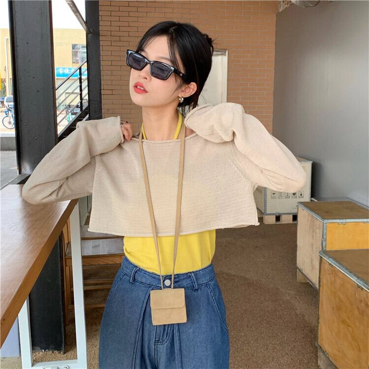 2020年初秋の新バージョンルーズホルタースモールキャミソール+カール長袖セータースタッキングトップ クレセントシティ10944542820