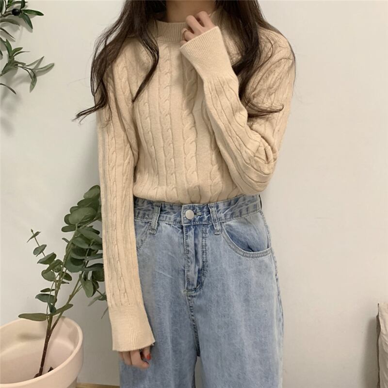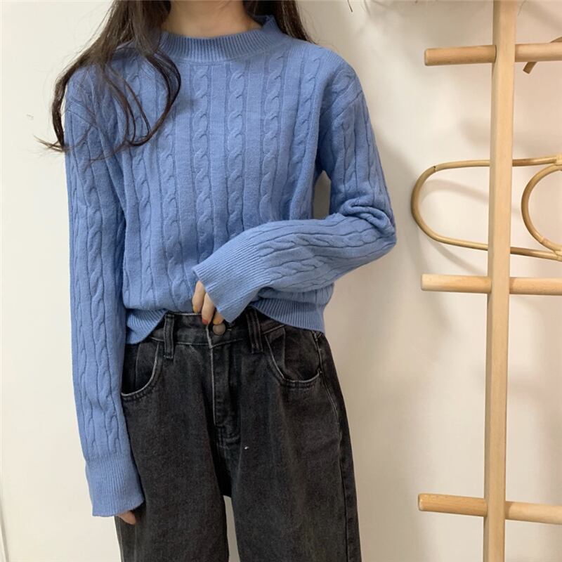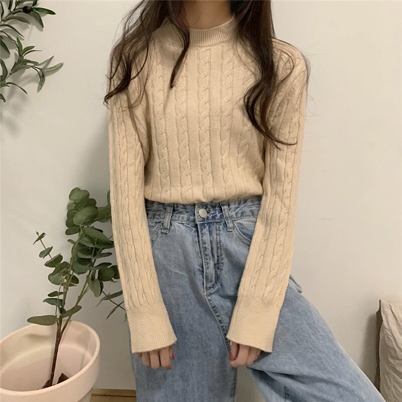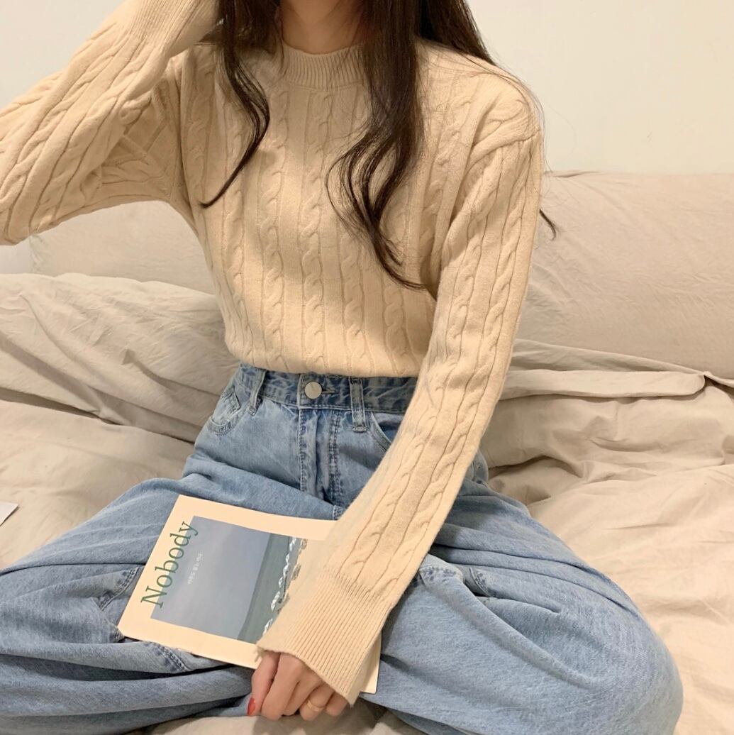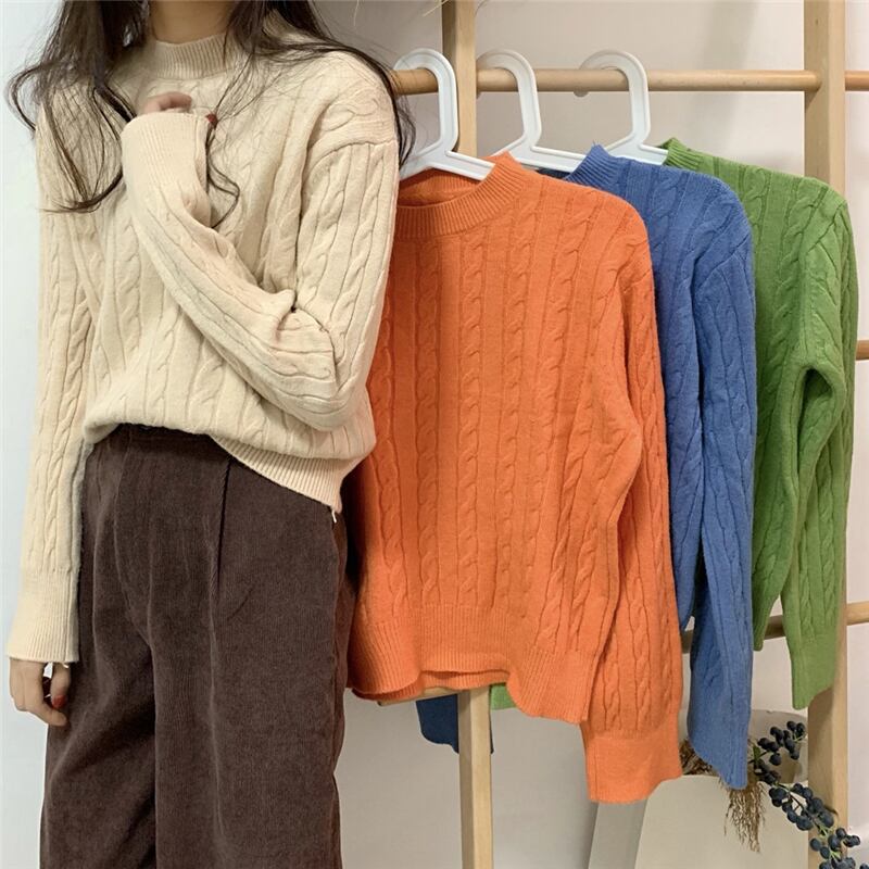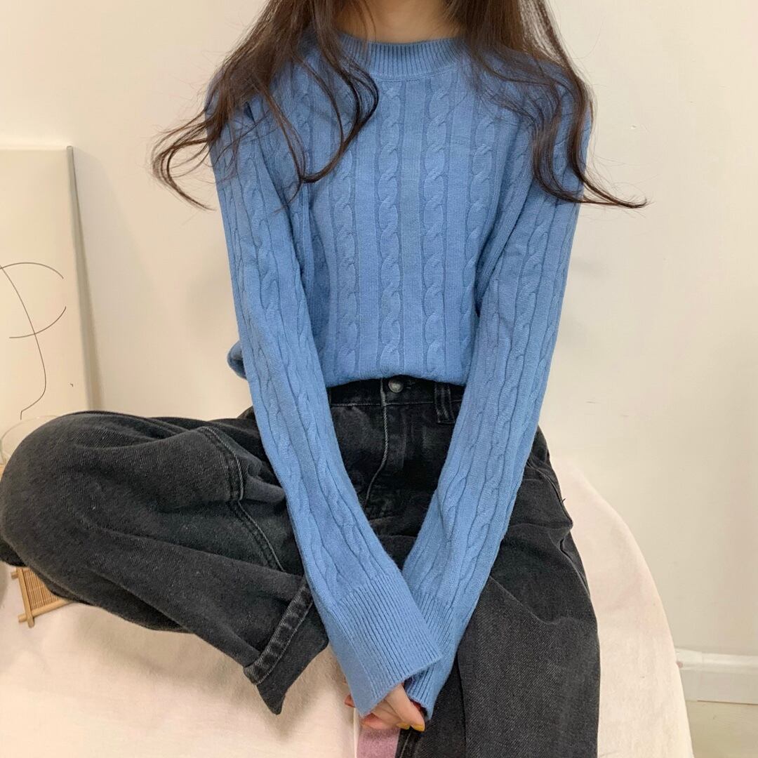 ツイストセーターの女性のアウター2020年秋と冬の新しいバージョンの緩い、薄い野生のソリッドカラーの長袖プルオーバーセーター クレセントシティ10883469021