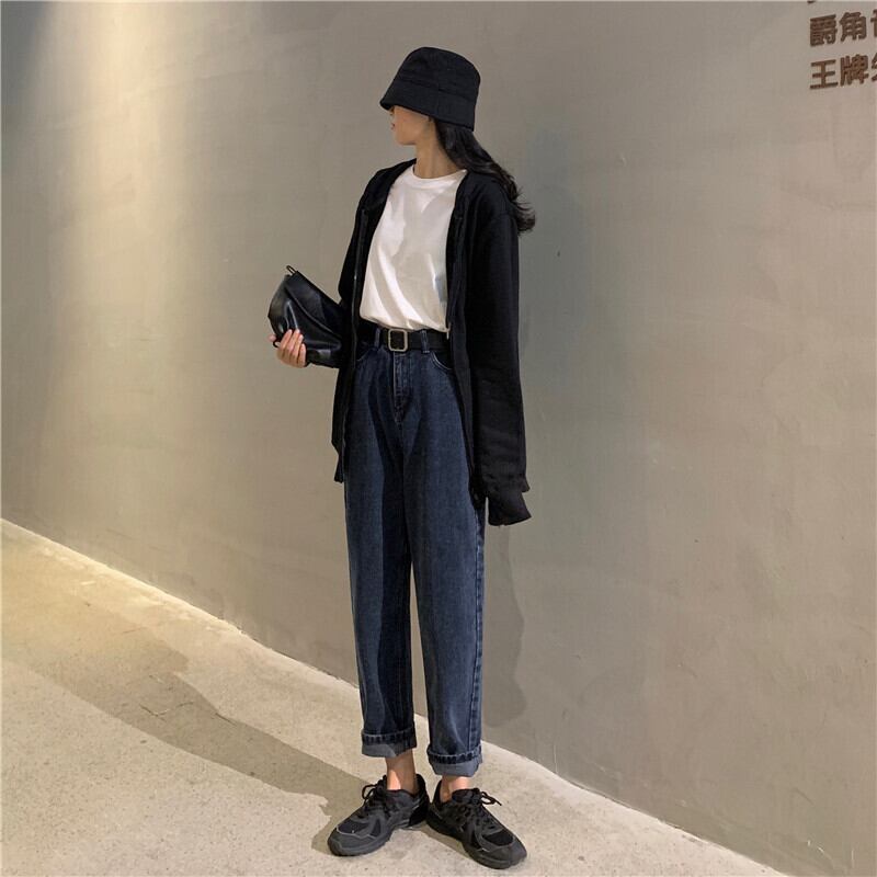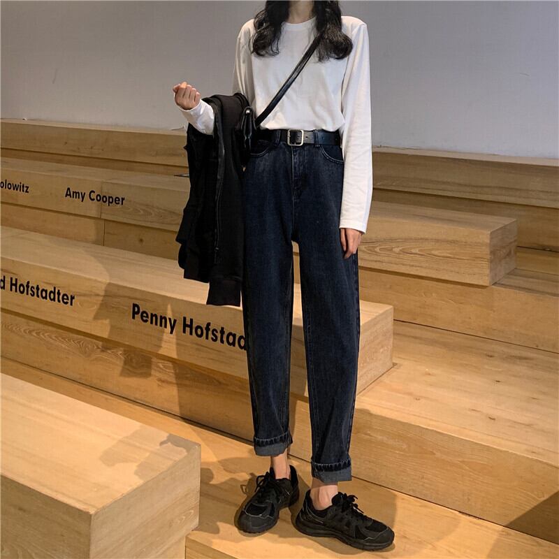初秋ジーンズレディース2020新しいスモールスタイルハイウエストルーズスリムレトロカジュアルストレートクロップドパンツ クレセントシティ32341747708