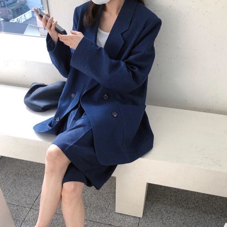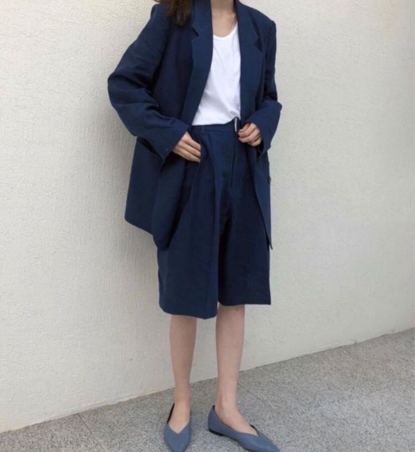 スーツ女性2020年秋新しいルーズカジュアルスーツジャケット+ハイウエストワイドレッグショーツツーピーススーツ クレセントシティ96765990828