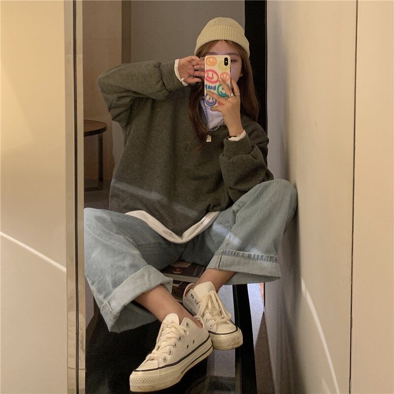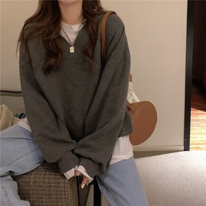 オータムスタイルルーズホワイトTシャツ グレーVネックセーター 秋物 クレセントシティ66001468350