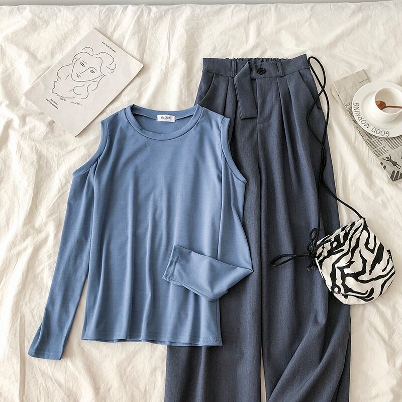 色:グレーパンツ,黒いズボン,ブラックトップ,ブルートップ