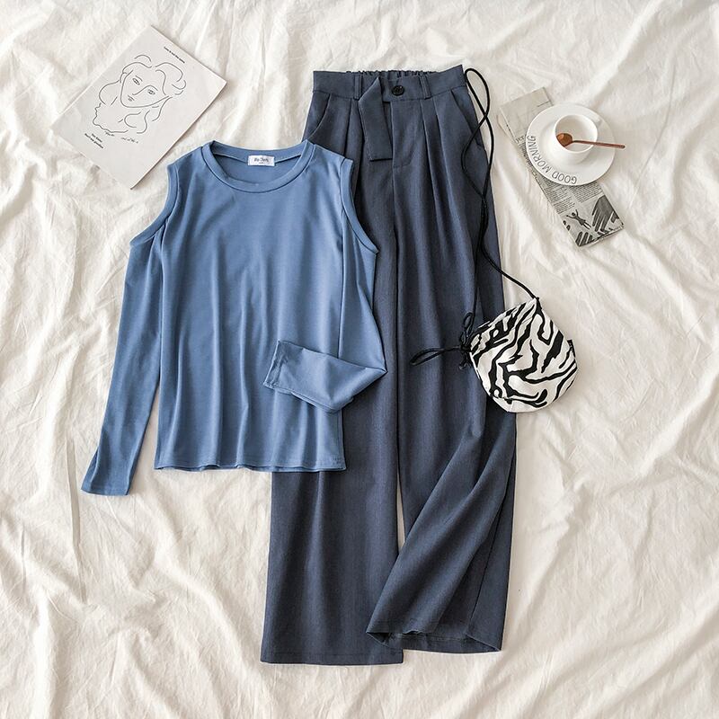 クレセントシティ2020ニュースーツパンツレディースルーズワイドレッグパンツカジュアル多用途ハイウエストストレートレッグパンツ クレセントシティ74110474242