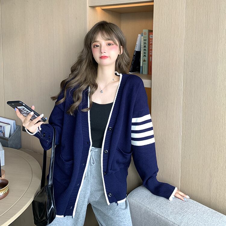 シングルブレストニットカーディガントップレディース2020年秋新作ルーズレイジースタイルアウターセータージャケット クレセントシティ95791569767