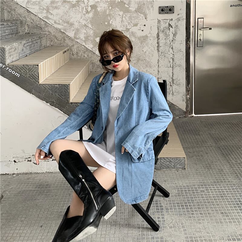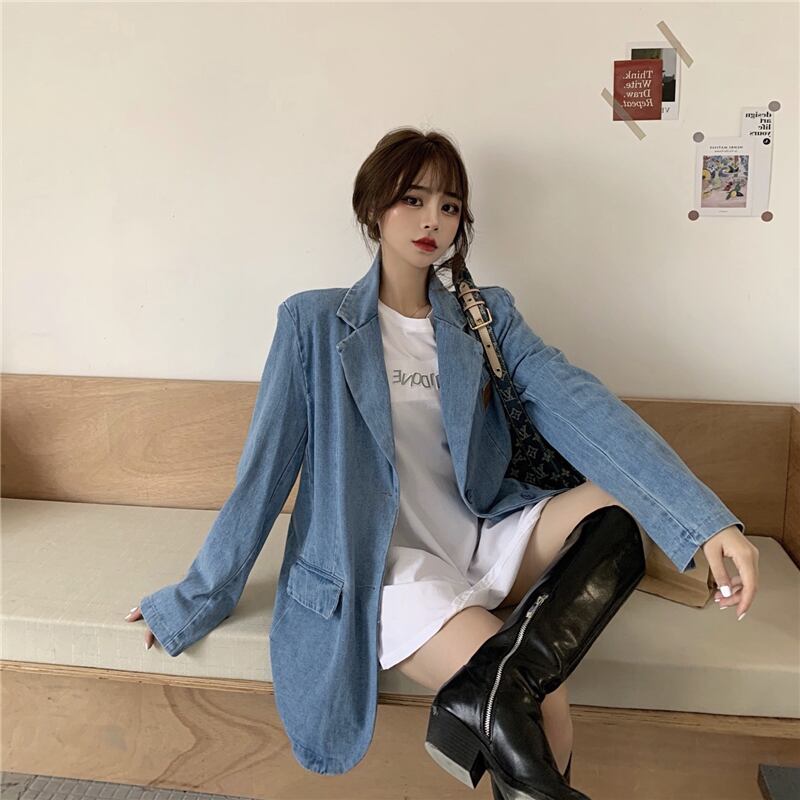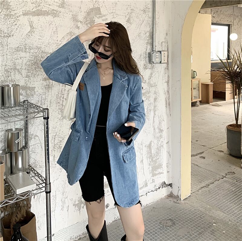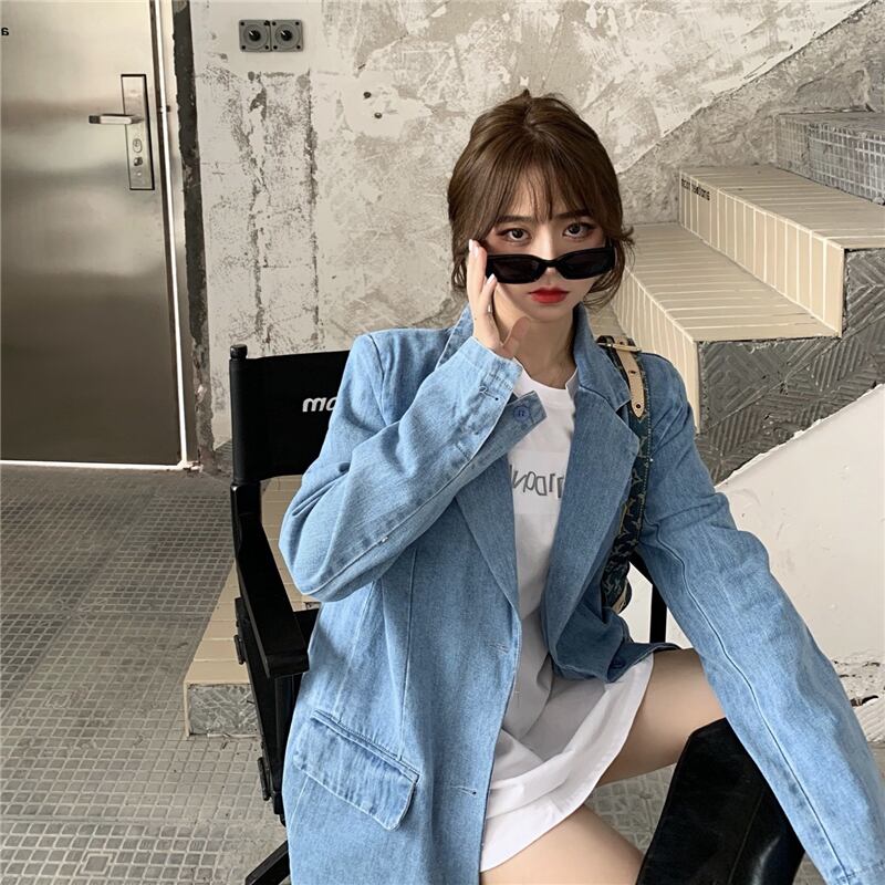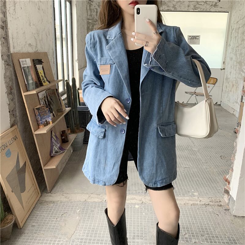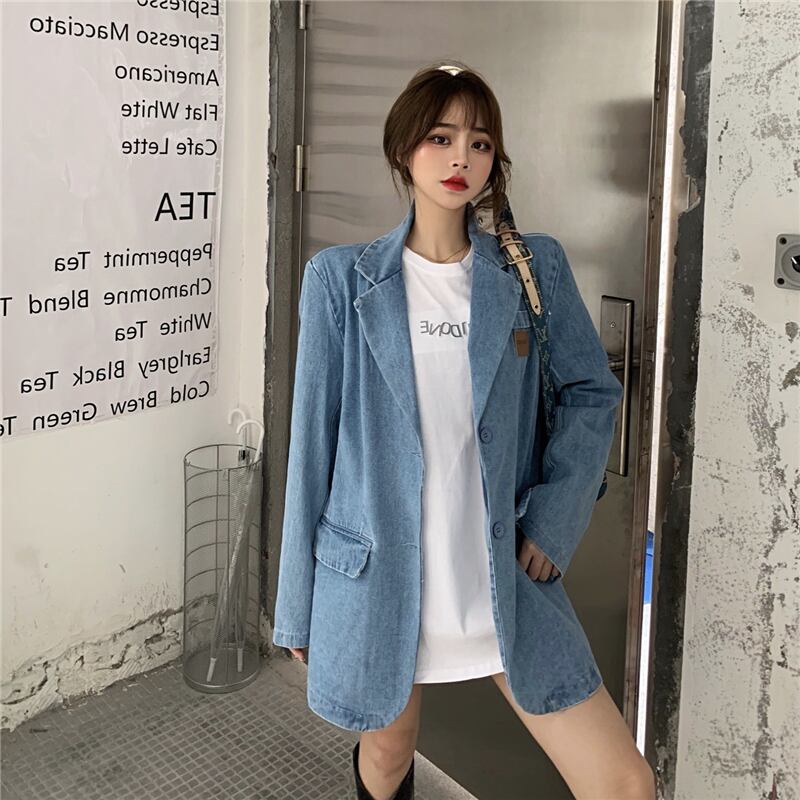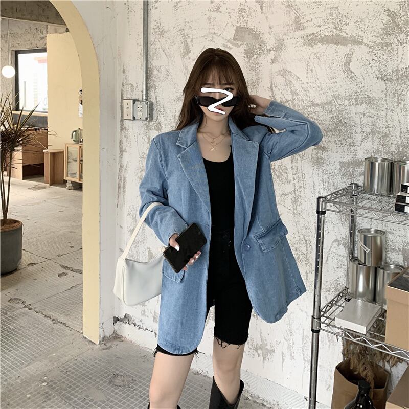 ブルーデニムスーツジャケットレディース2020年初秋新作ブリティッシュスタイルショルダーパッドデザインセンススモールルーズスーツ クレセントシティ28994430334
