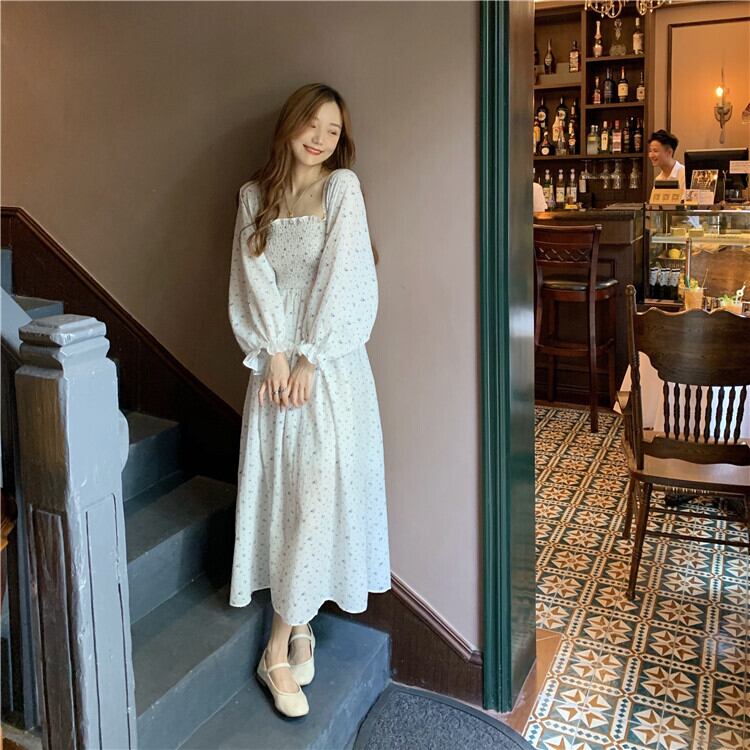 チューブトップフローラルドレスレディース2020新しいフレンチレトロウエストウエスト気質膝丈スカート+カーディガンジャケット クレセントシティ39417135883