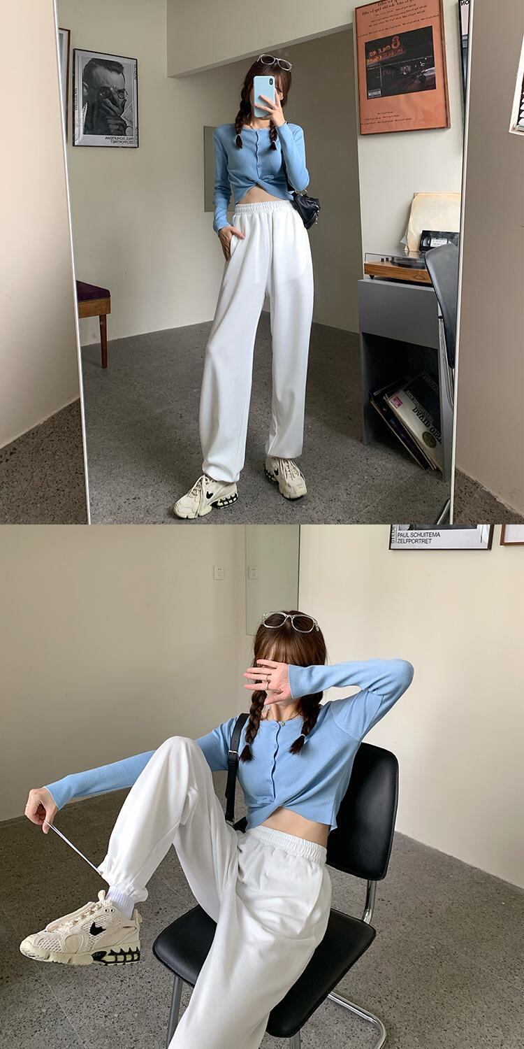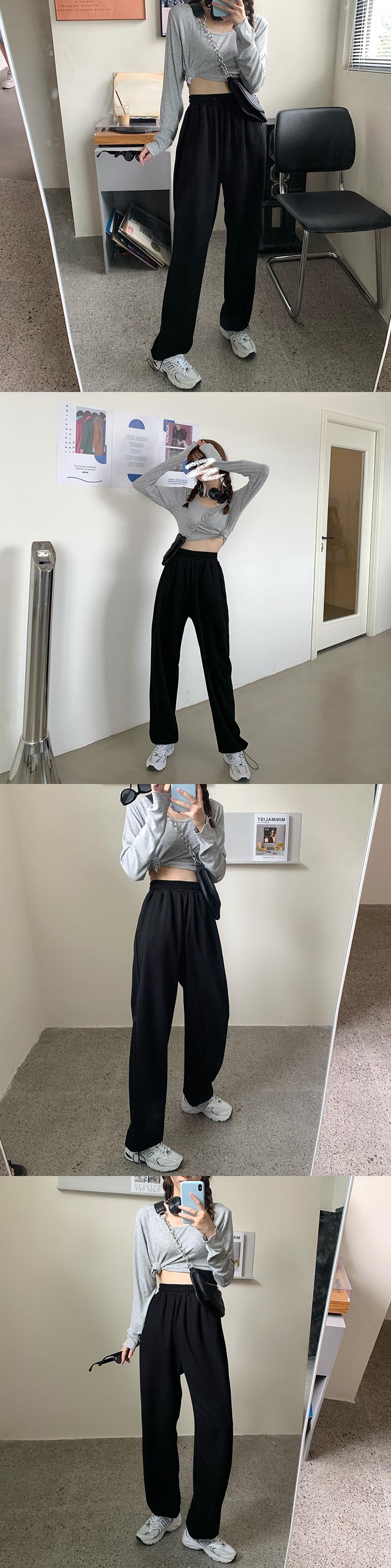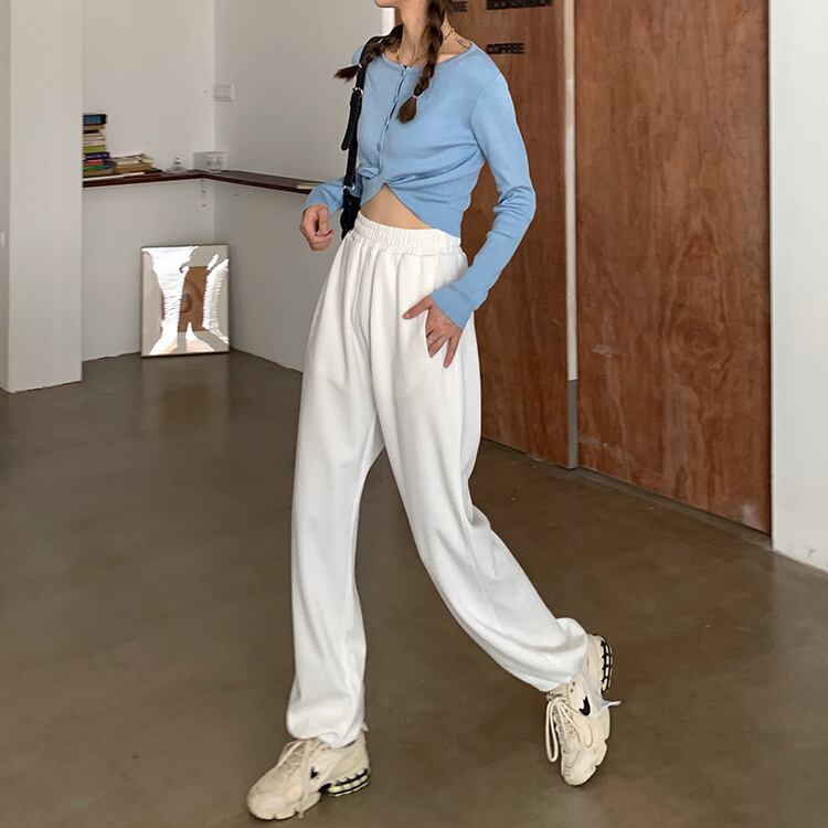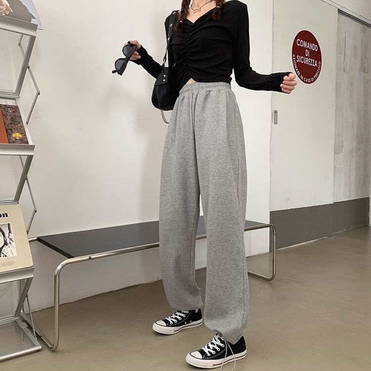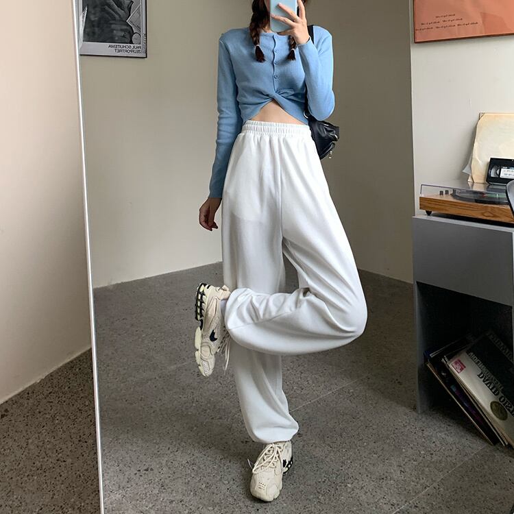 2020年初秋のレディースカジュアルパンツニュースタイルハイウエストルーズドレープストレート伸縮性ウエストドローストリングドローストリングスウェットパンツ クレセントシティ71605137183