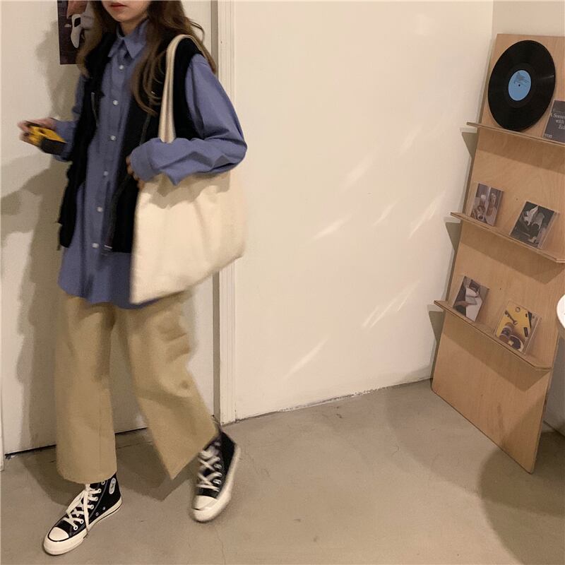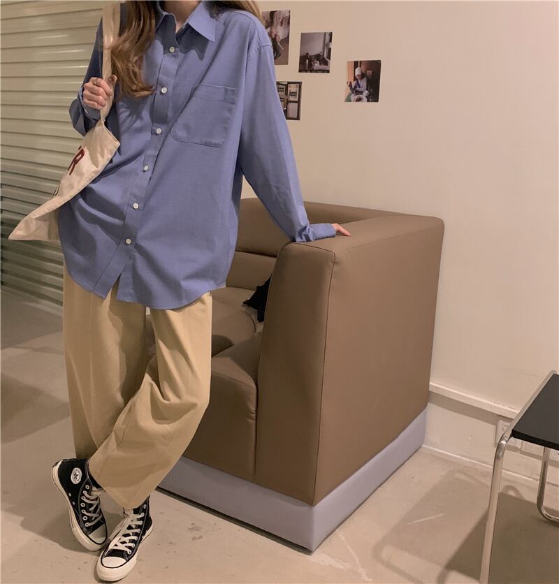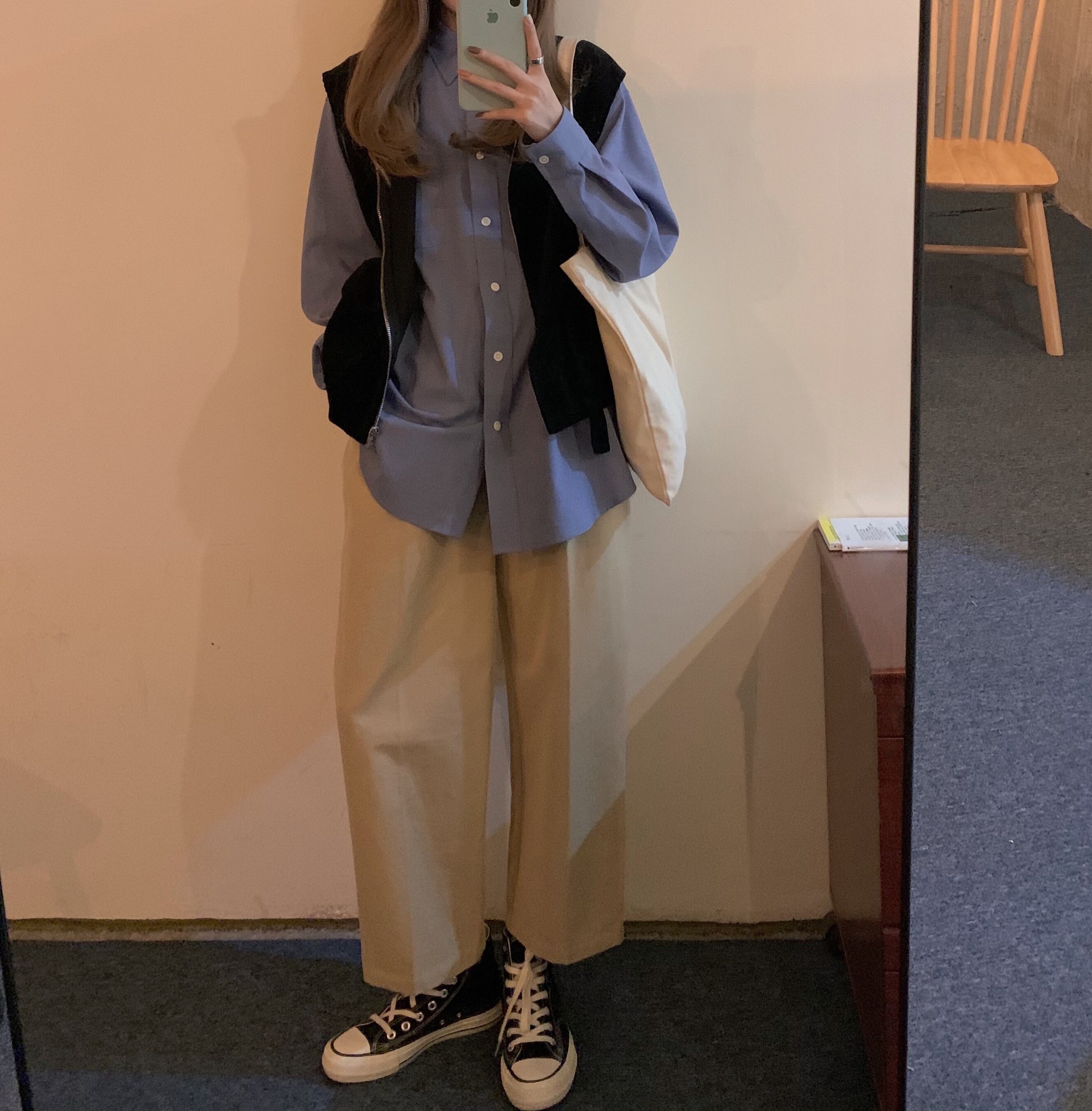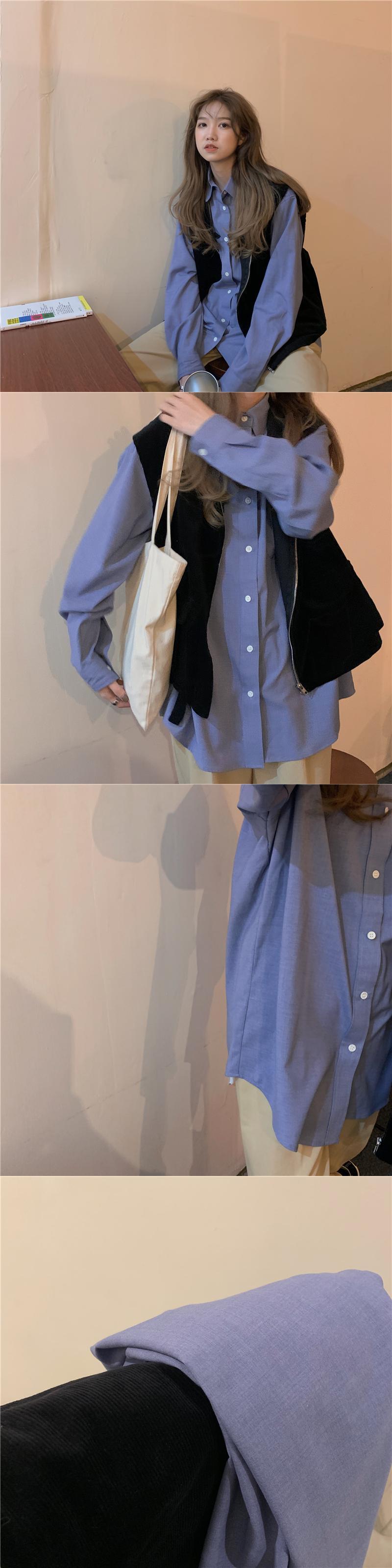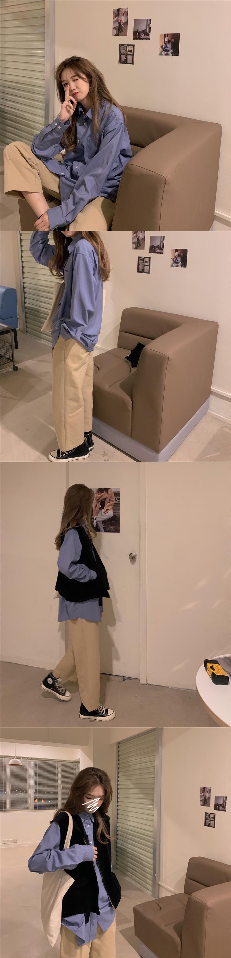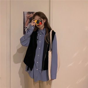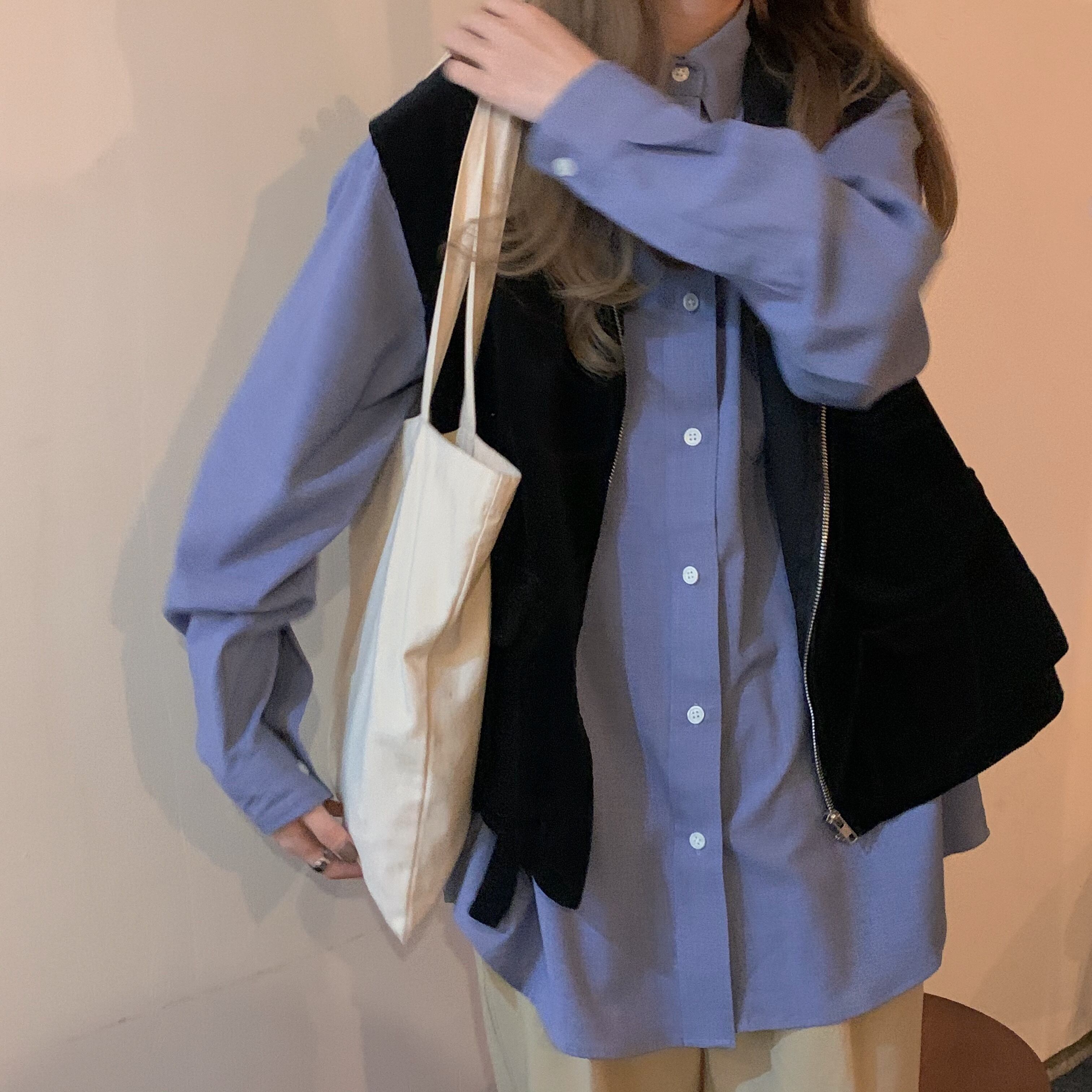 スーツウィメンズ2020年初秋シックブルールーズロングスリーブシャツ+ブラックジッパーベスト クレセントシティ3361885843