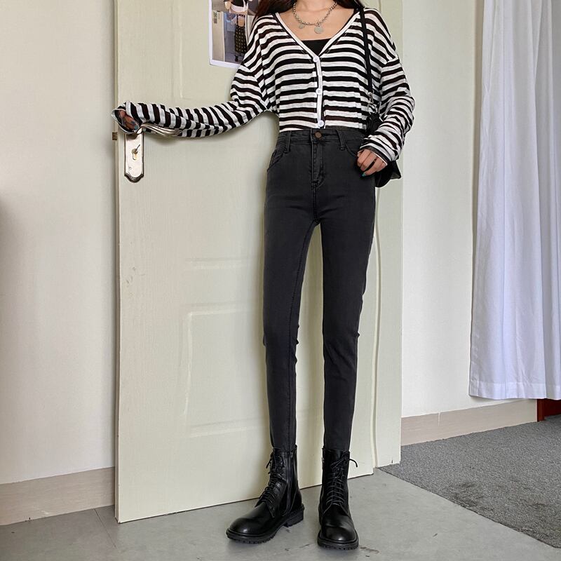 小さな背の高いウエストジーンズ女性の2020年初秋ファッションスリムと薄い黒のスキニーパンツの新しいバージョン クレセントシティ30116752194