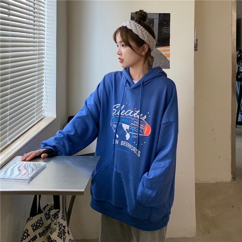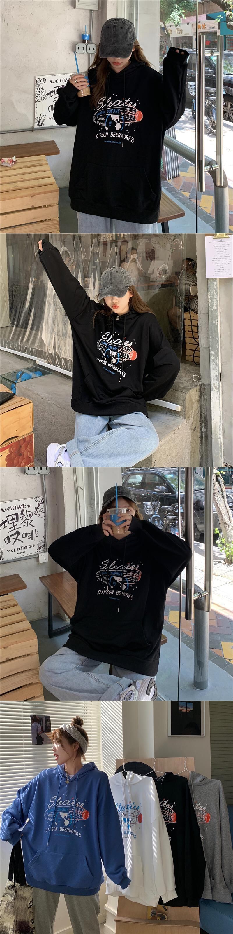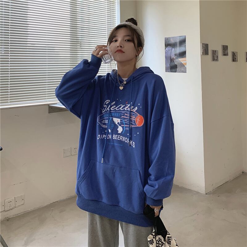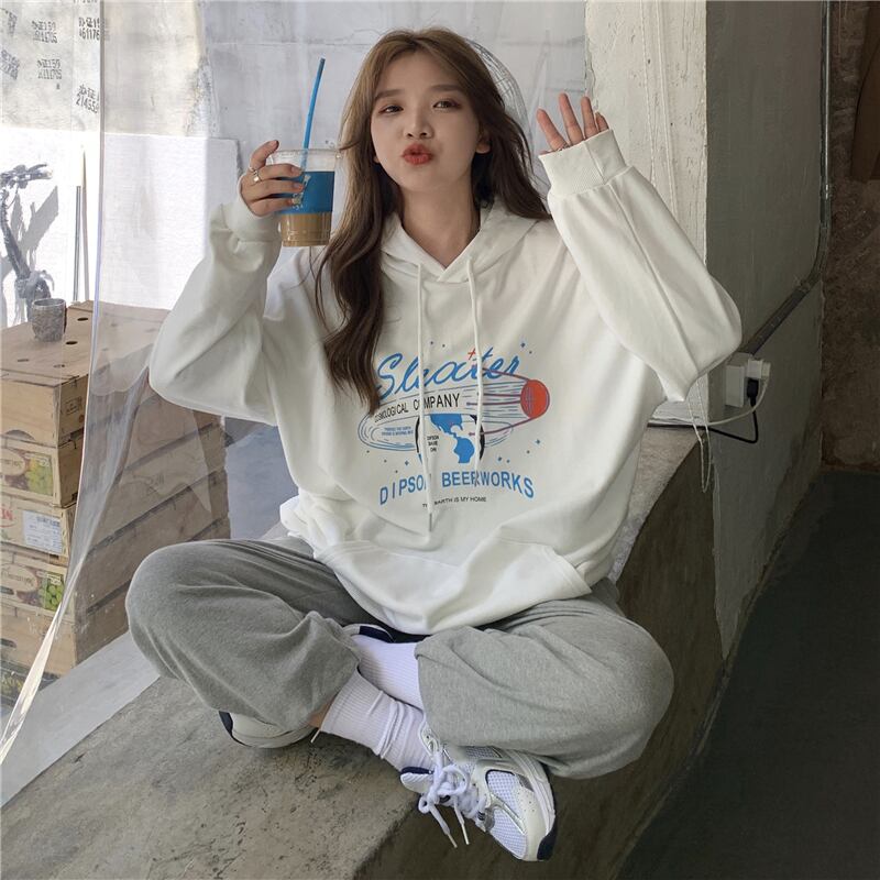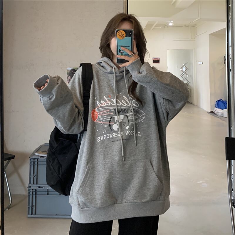 フード付きセーター女性の2020年初秋新バージョンのルーズレタープリントの学生オールマッチミドル丈ポケットトップ クレセントシティ63118980562