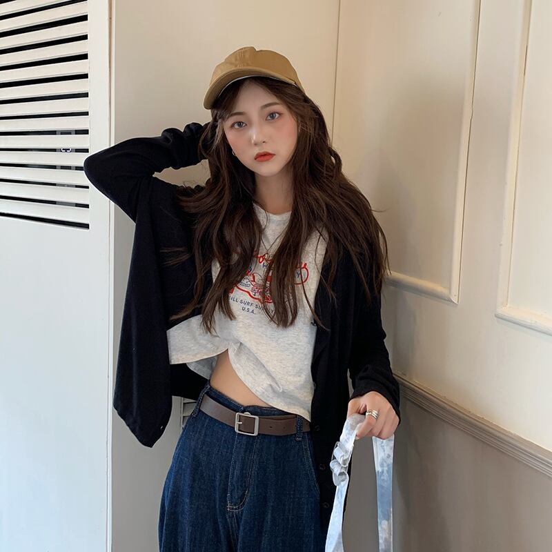 2020年初秋ブラックルーズルーズワイルドレイジースタイル薄手のニットカーディガントップ婦人服の新バージョン クレセントシティ18605178037