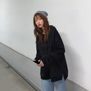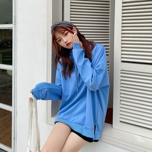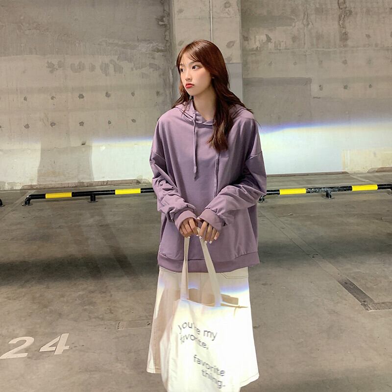 ピュアカラーフード付きセーターレディース2020年初秋ニュースタイルミドル丈キャンディーカラールーズスプリットスチューデントカジュアルトップ クレセントシティ34937289358