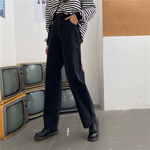 ブラックワイドレッグパンツウィメンズ2020新バージョンのルーズストレートモップパンツ、ハイウエスト、薄手のオールマッチジーンズパンツ クレセントシティ60021919436