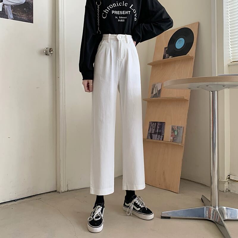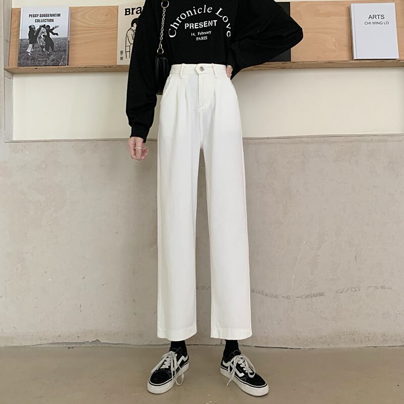 オフホワイトハイウエストジーンズレディース2020年初秋新スタイルストレートルーズで薄いドレープカジュアルワイドレッグパンツ クレセントシティ60285065255