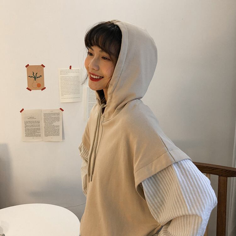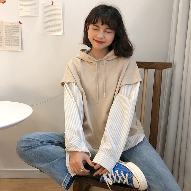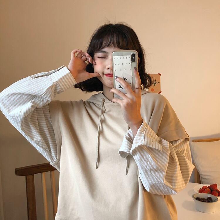 ストライプステッチセーターレディース2020新しい秋のスタイルのデザインセンスルーズで用途の広い怠惰な風フード付きジャケットのトレンド クレセントシティ618068525