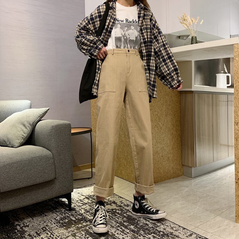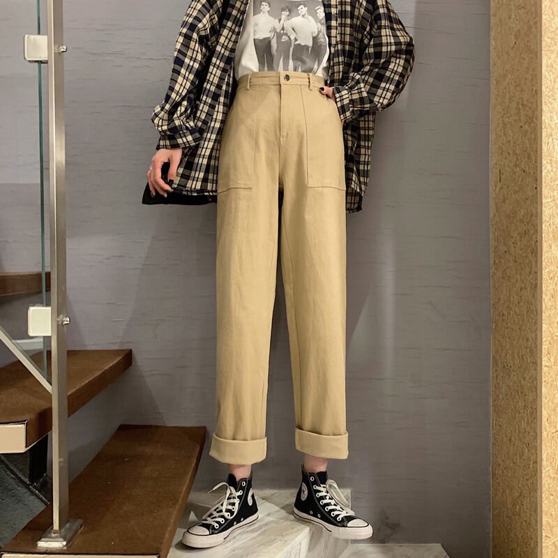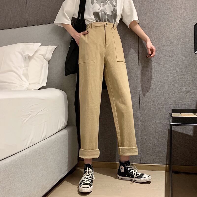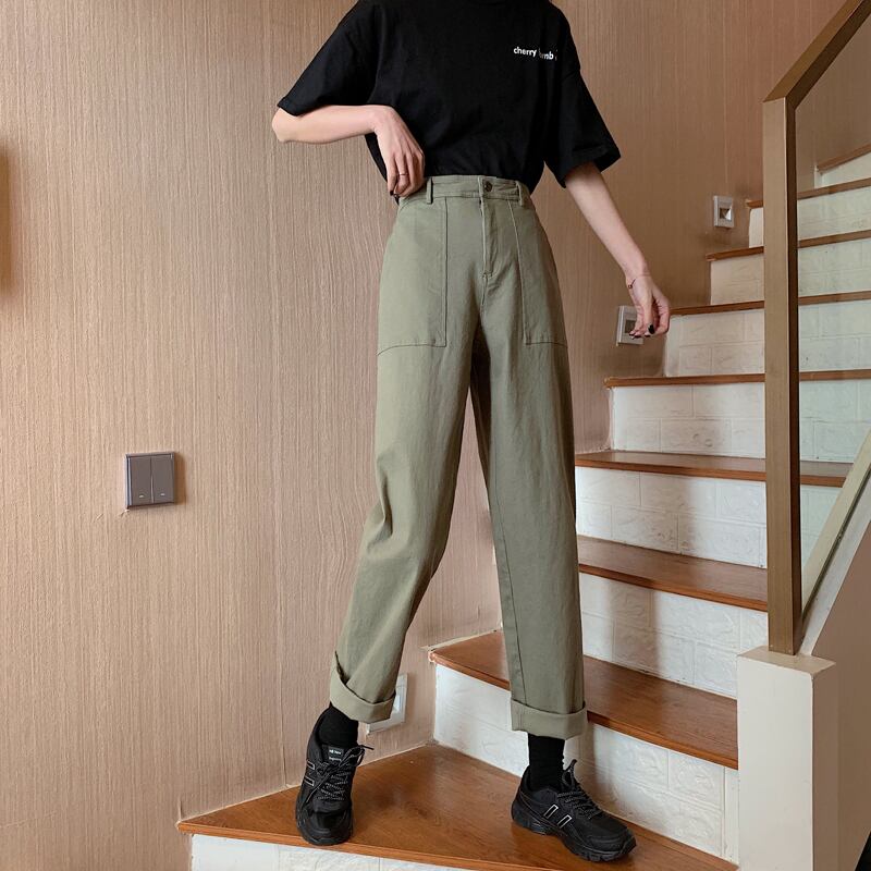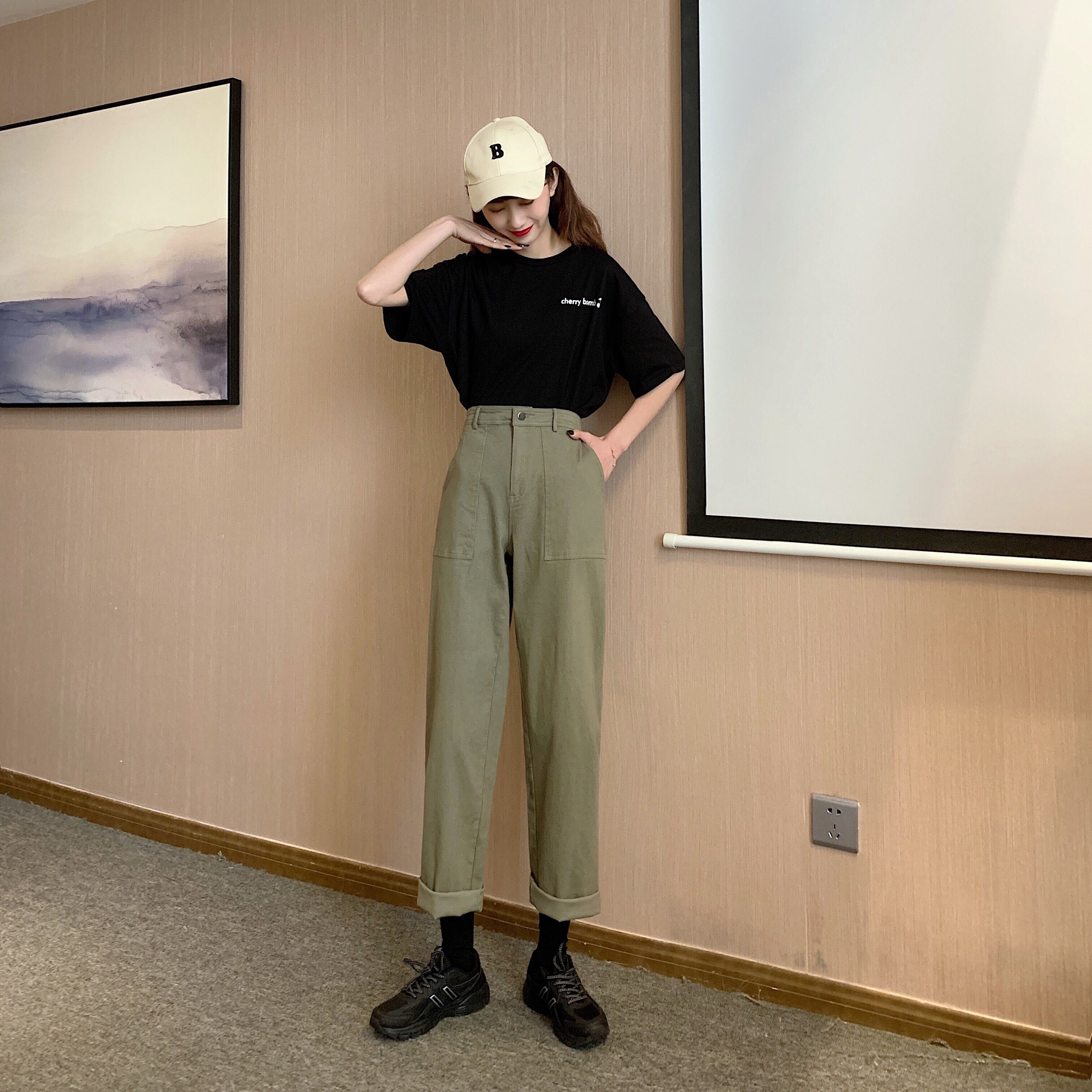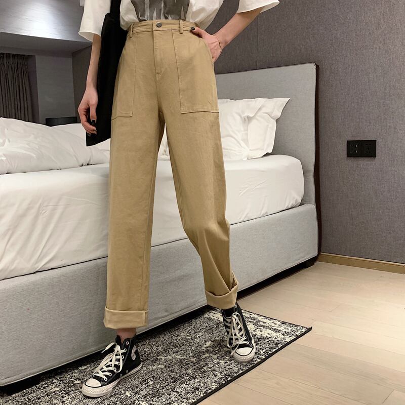 2020年初秋新作スタイルのセミエラスティックウエストハイウエストルーズで細身のスリムストレートパンツのレディースカジュアルパンツ クレセントシティ58405693755