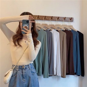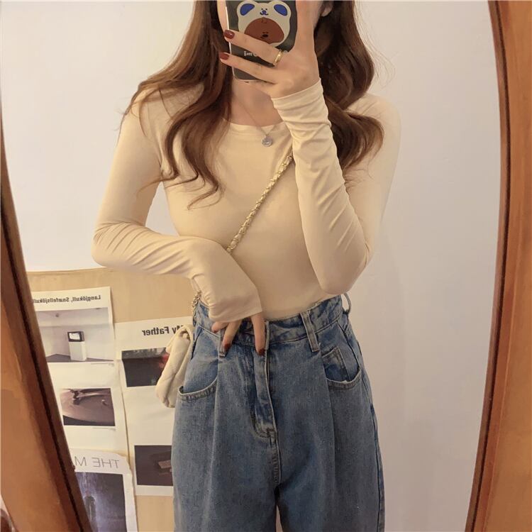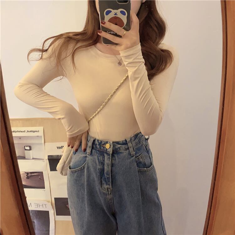 長袖Tシャツ女性の2020年秋新バージョンのスリムスリミングオールマッチ無地ボトミングシャツ、学生トップ付き クレセントシティ46203504905