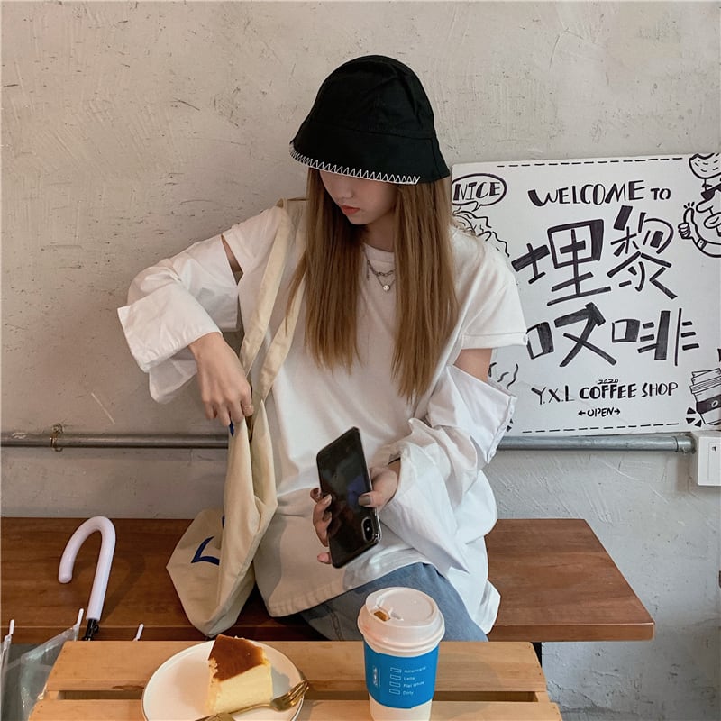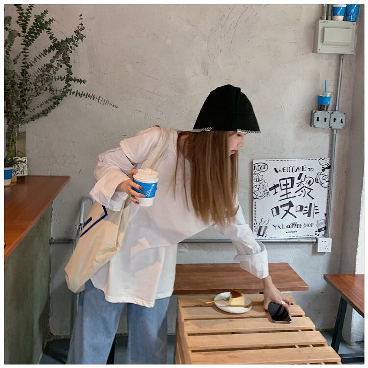 ルーズステッチバックルデザイン長袖Tシャツレディース2020年初秋新作無地ミドル丈スタイルシントップ クレセントシティ81058828075