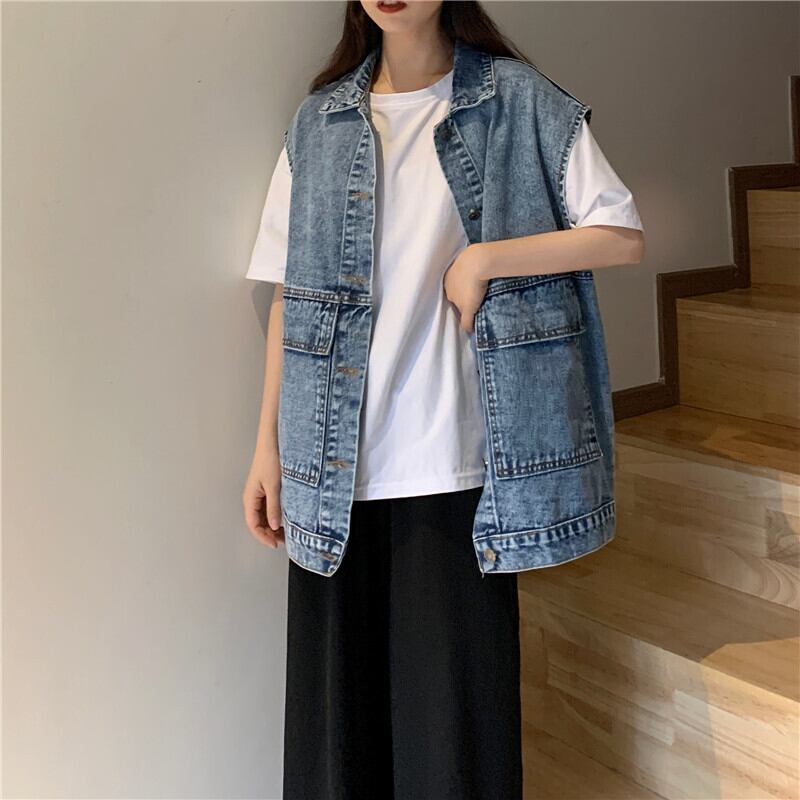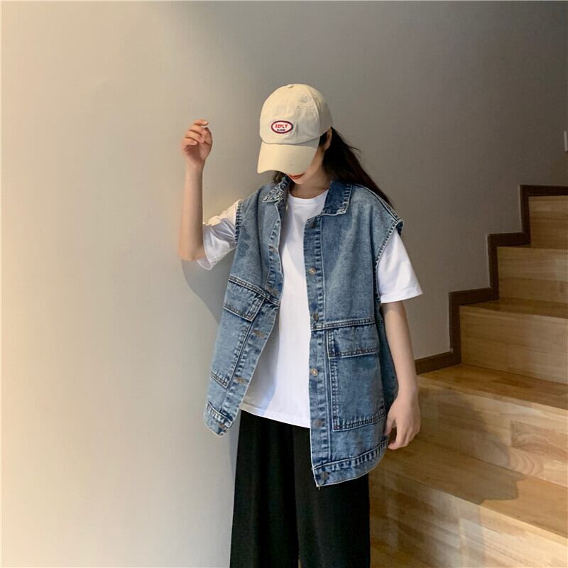 ツーリングレトロデニムベスト女性緩い2020年秋の新バージョンのノースリーブチョッキベストとジャケットトレンド クレセントシティ18760240290
