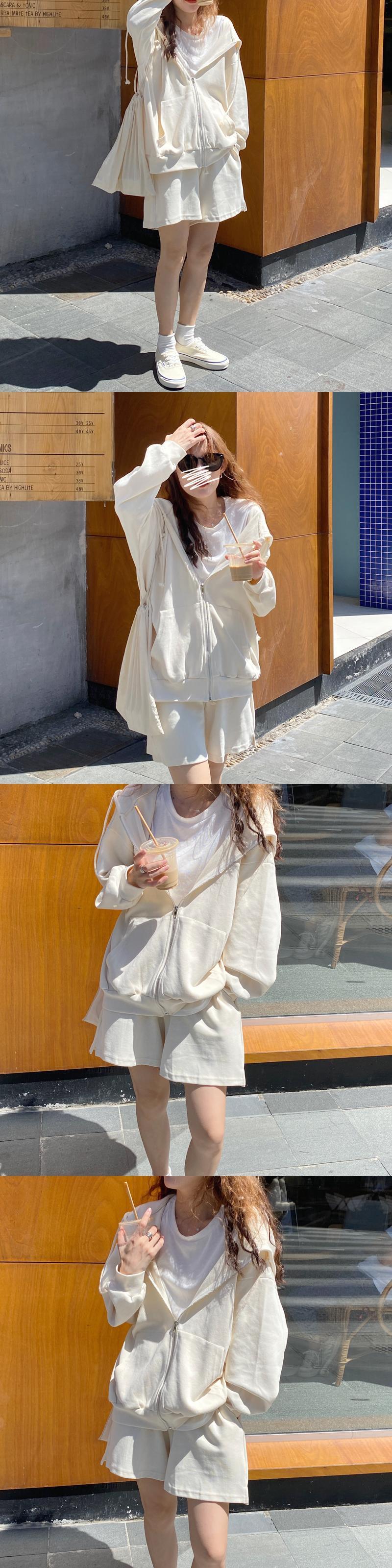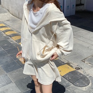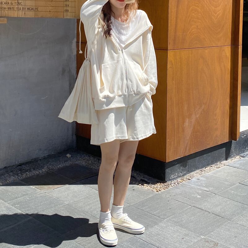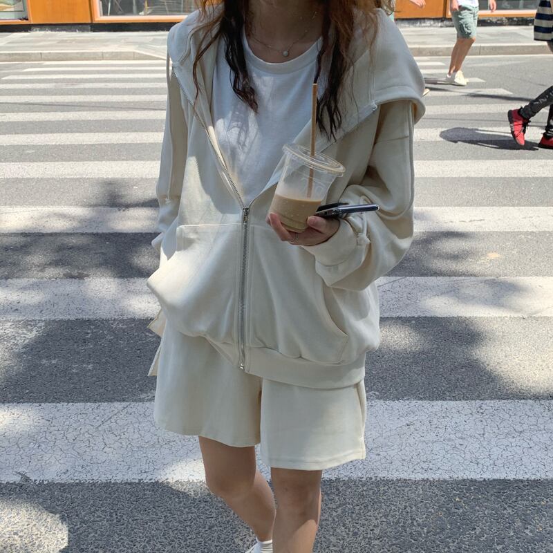 スーツレディース2020年初秋新作ルーズセーターフード付きカーディガン+ハイウエストワイドレッグショーツツーピースセット クレセントシティ43620787567
