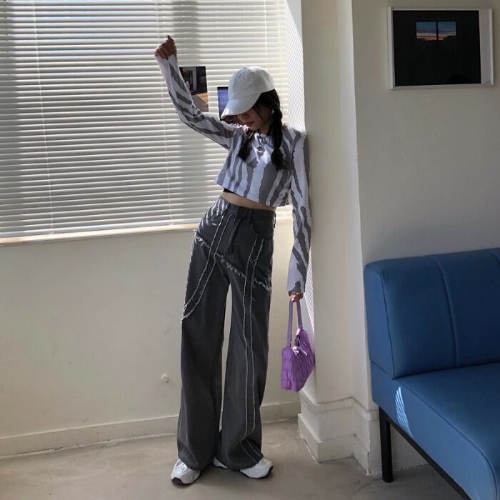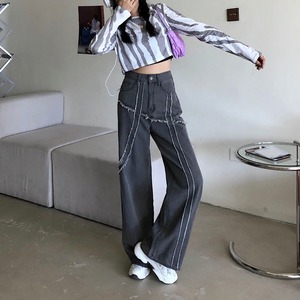 ハイウエストジーンズレディース2020年初秋新作ルーズ&シンストレートワイドレッグファッションオールドパンツ クレセントシティ75683721594