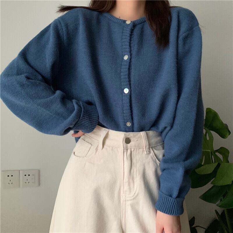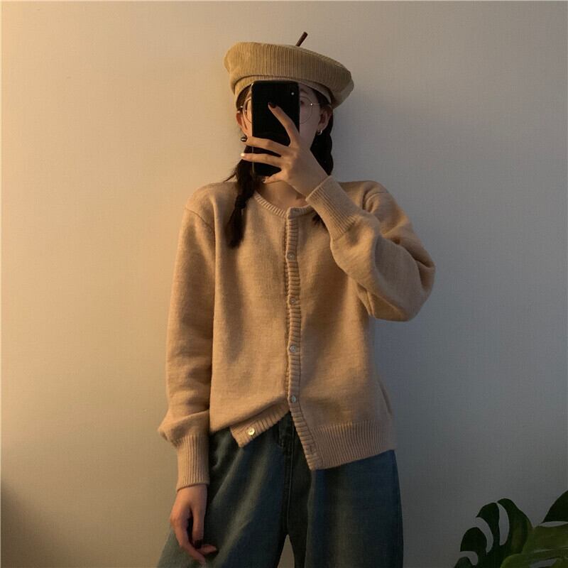 ピュアカラーセーターカーディガンジャケットレディース2019新バージョンルーズアウターウェア学生長袖ショートニットセータートップ クレセントシティ87031333485