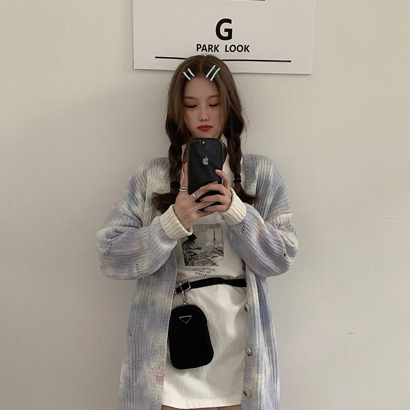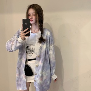 ニットセーター薄手の女性の2020年初秋bf風絞り染めグラデーションデザインルーズホールカーディガンの新バージョン クレセントシティ78869996710