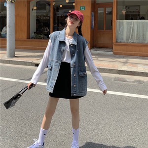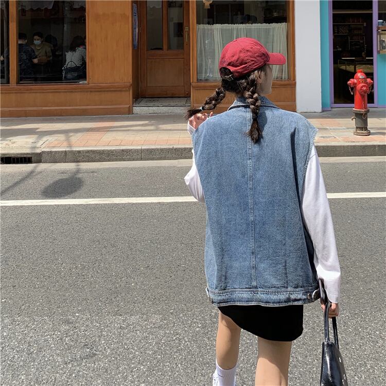 ブルーデニムジャケットレディース2020年初秋新作アウターゆったりチョッキ学生カジュアルチョッキトレンド クレセントシティ8268507184