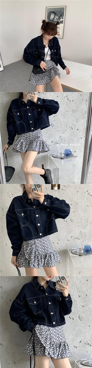 デニムジャケットレディース2020年初秋新作レトロブルーショートルーストップ+フリルAラインスカート クレセントシティ81283794502