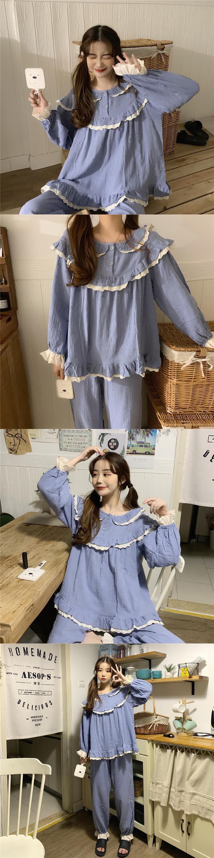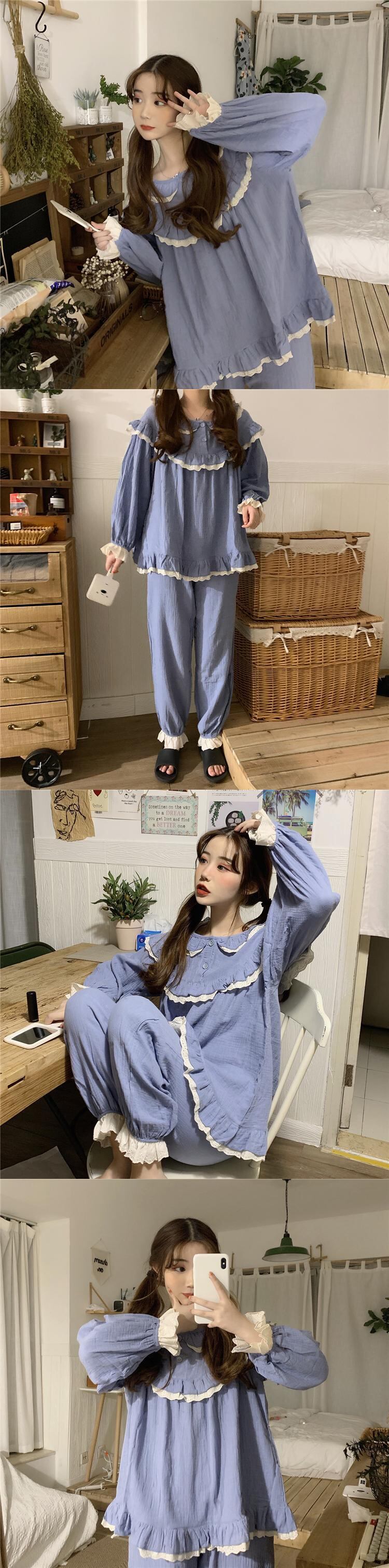 春の新しいスタイルの甘くて素敵な友達のパジャマ女性はカジュアルで快適なツーピースのトレンドの家庭服を着ることができます クレセントシティ52358070006