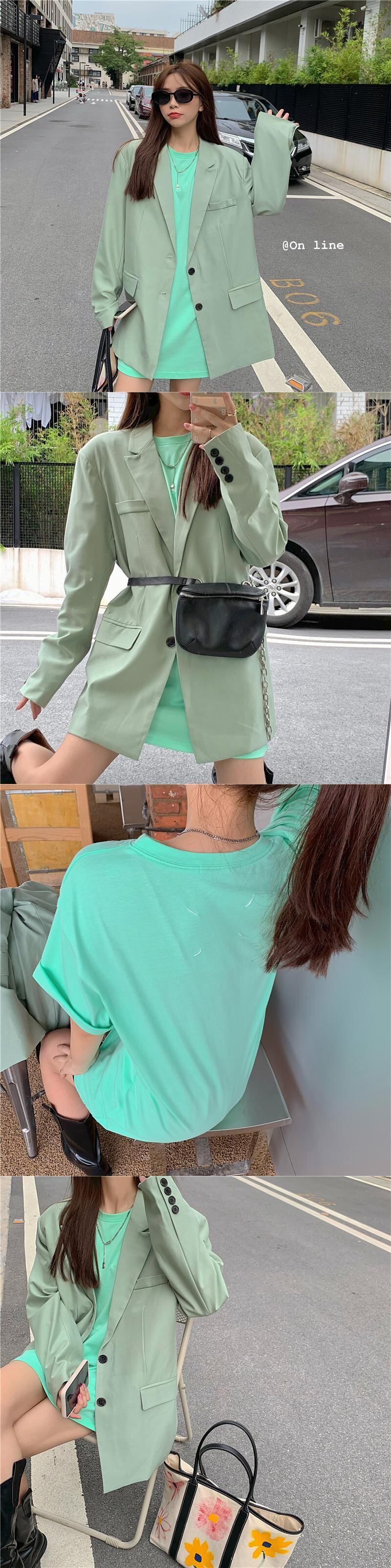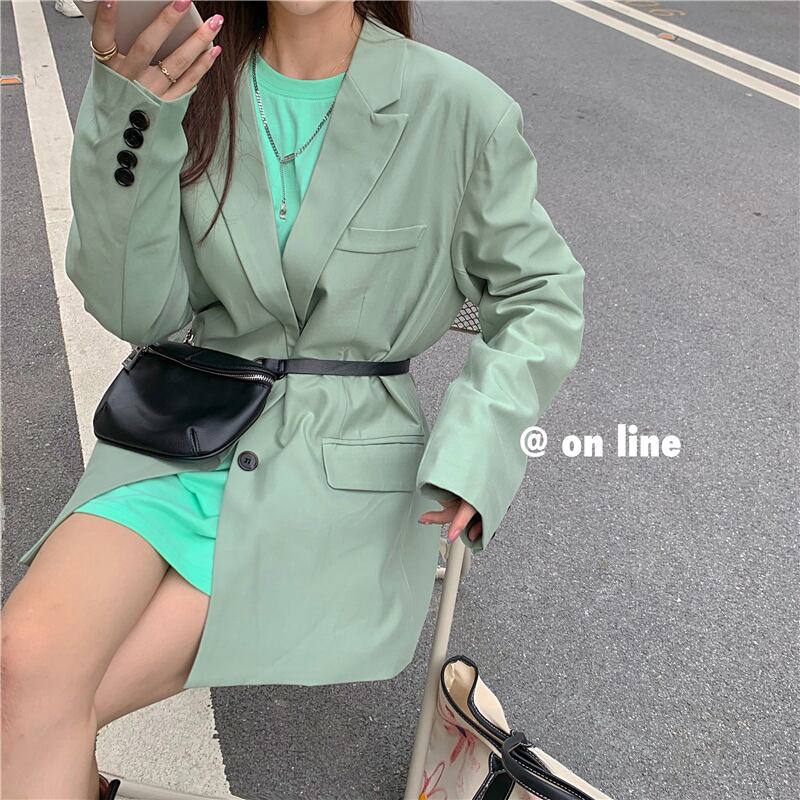 緑の小さなスーツのジャケットの女性の秋の2020年の新しいスタイルの緩い英国風ロングフライストリートスーツジャケット クレセントシティ30976696244