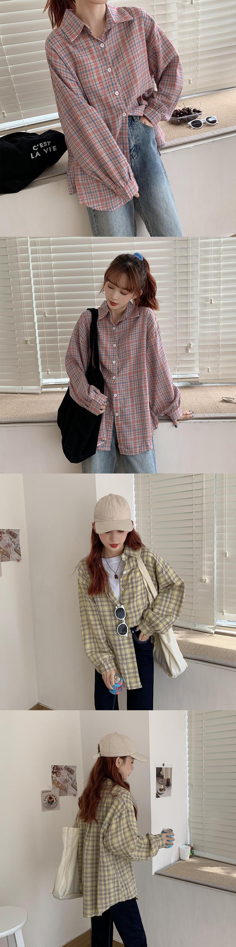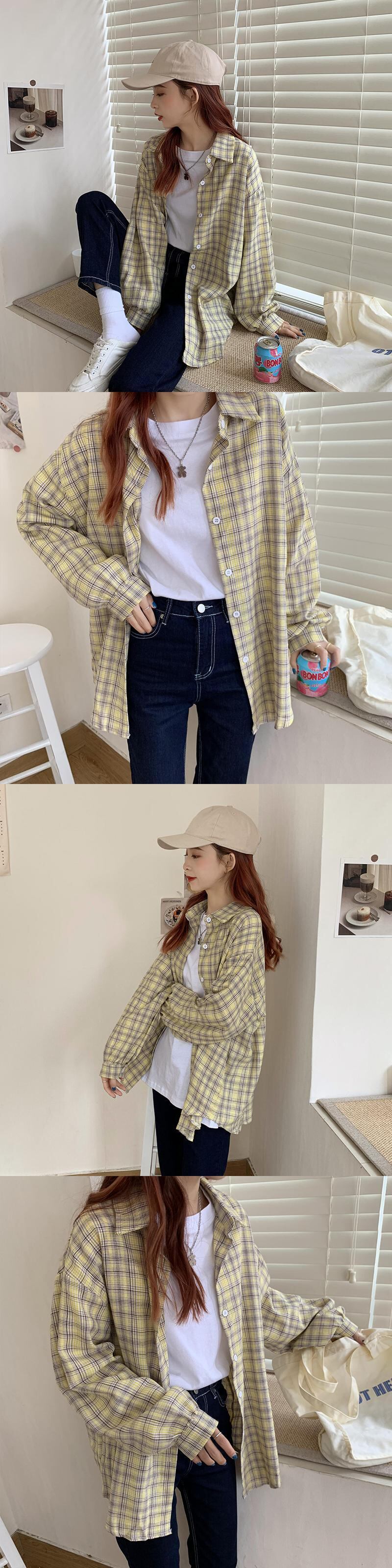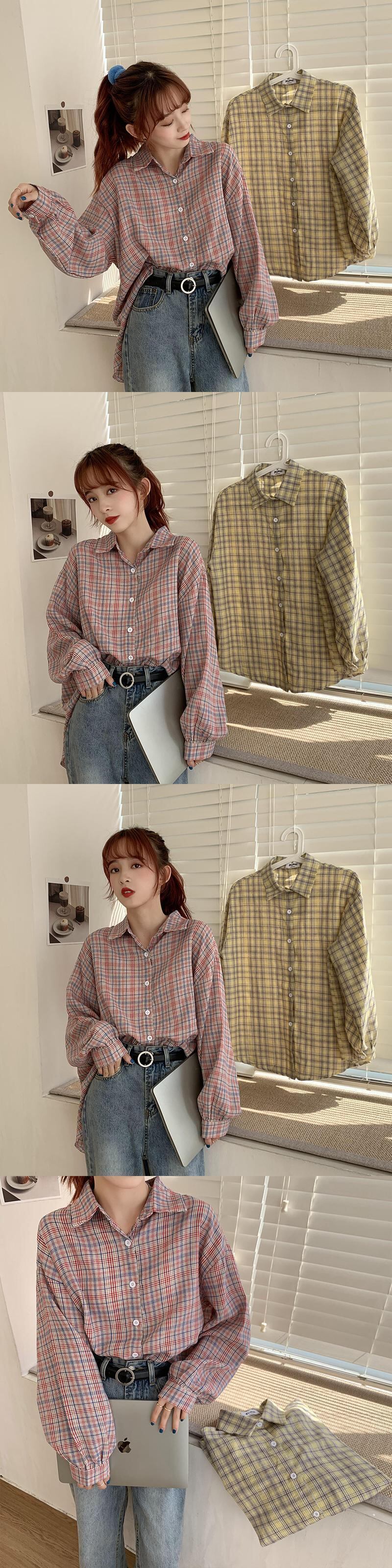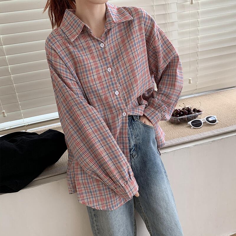 三日月市格子縞のシャツの女性のレトロな香港スタイルの秋2020ルーズオールマッチ長袖シャツジャケット クレセントシティ97746146213